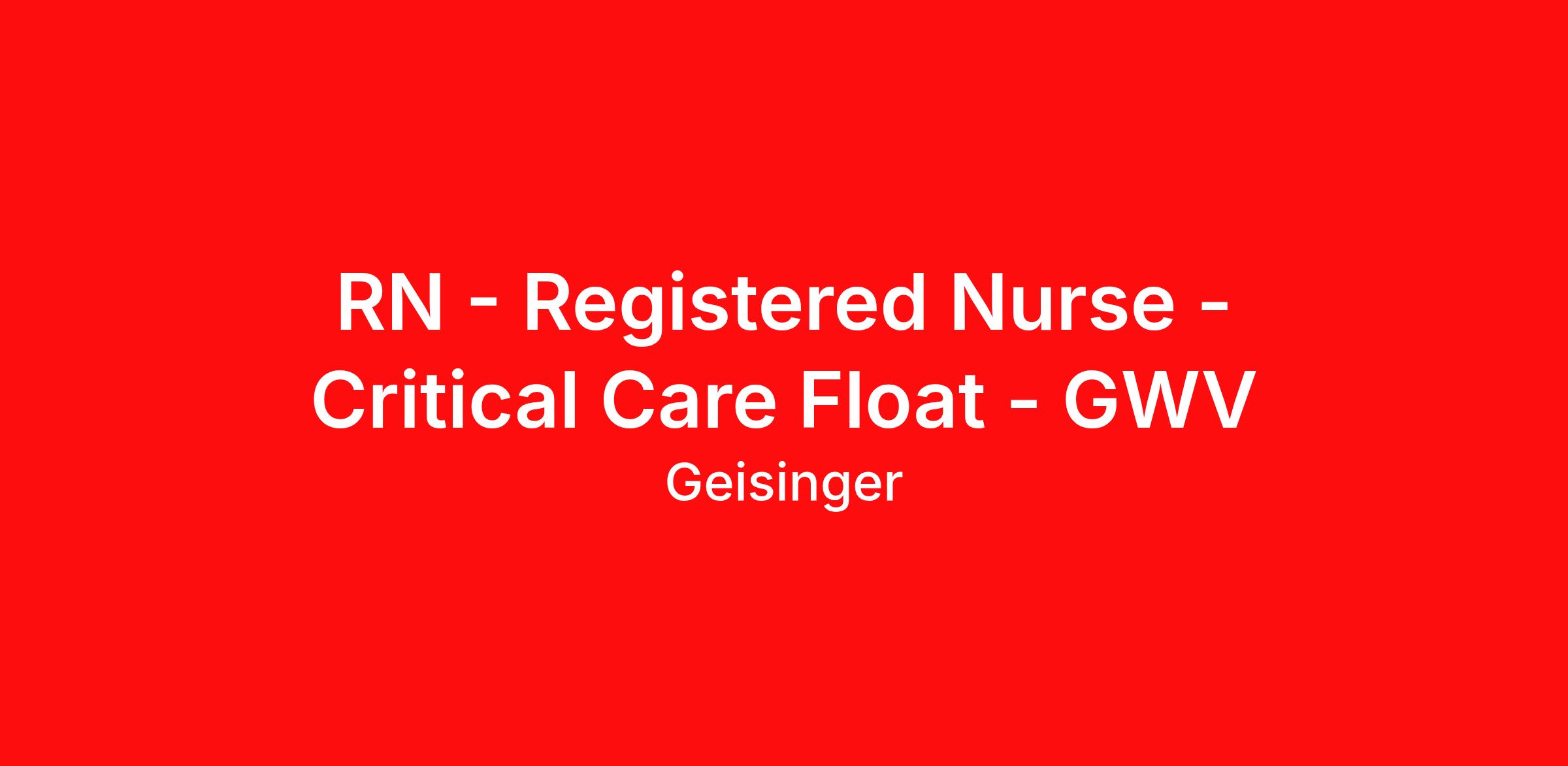 RN - Registered Nurse - Critical Care Float - GWV