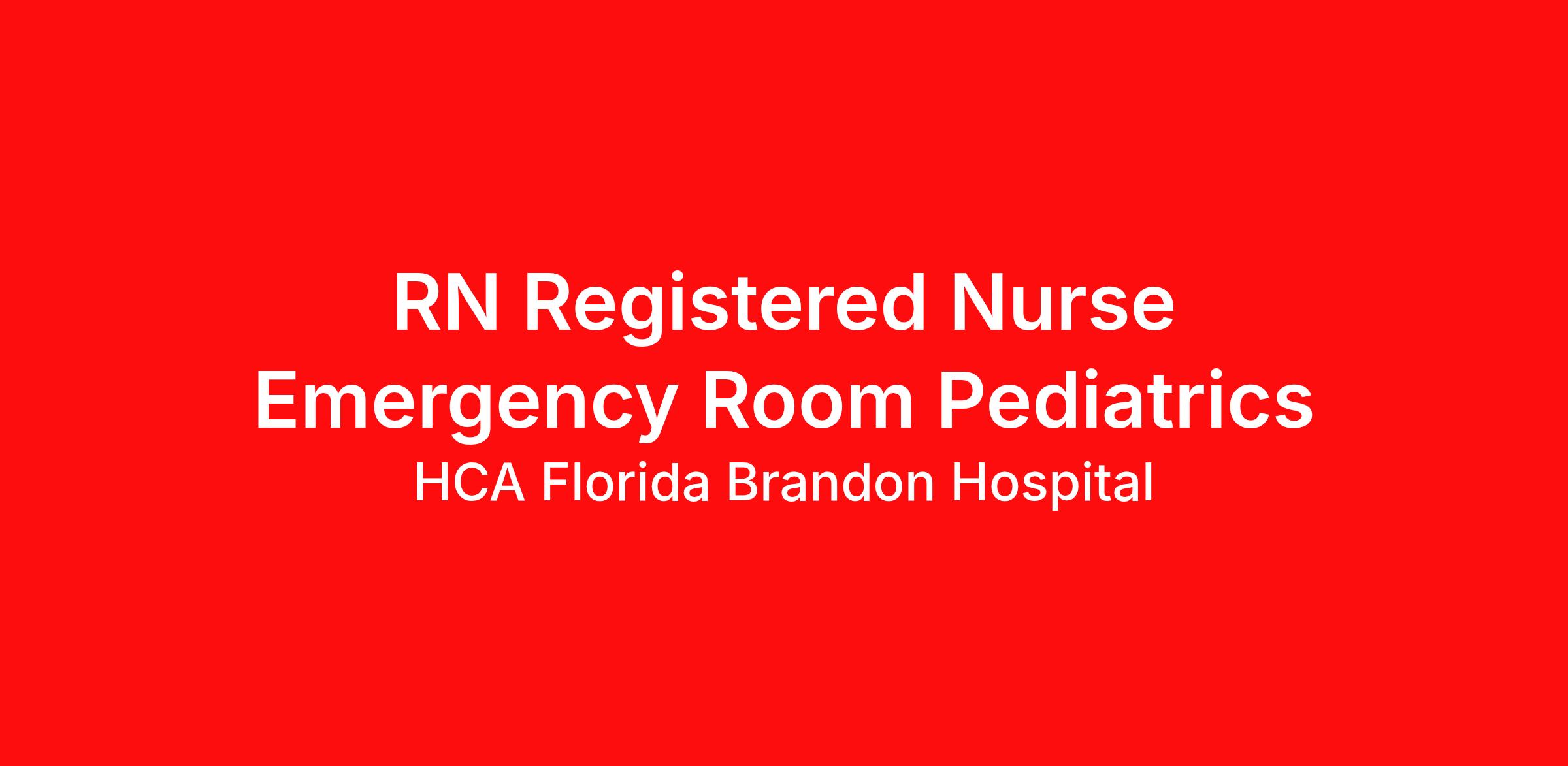 As a RN Registered Nurse Emergency Room Pediatrics , your voice to influence patient care is valued and empowered at every turn –whether through open, collaborative relationships with your direct manager or more formal opportunities through hospital councils and national nursing initiatives. You'll help shape decisions that elevate both patient outcomes and the future of nursing. Do you want to work where you have a voice? Nurses are at the forefront of our commitment to the care and improvement of human life. At HCA Healthcare, there are many ways for nurses to have a voice through professional practice councils, advisory councils, vital voices surveys, and units of distinction. We learn from our multi-generational nursing family. We partner with our Nurses at HCA Florida Brandon Hospital! Job Summary and Qualifications We are seeking an ER Registered Nurse for our dynamic Emergency Department. You will provide clinical expertise to ensure all patients receive high quality, efficient care in a fast-paced, high-acuity environment. We are an amazing team that works hard to support each other and are seeking a phenomenal addition like you who feels patient care is as meaningful as we do. We want you to apply now. What you will do in this role: You will manage efficient flow of patients including triage, screening, preparation for exam, providing general nursing care, and arranging or testing and admissions. You will instruct patients and families regarding medications and treatment instructions. You will maintain and review patients’ records including posting tests and examination results. You will administer medications in accordance with physician orders. Requirements: Must be licensed as a Florida Registered Nurse in accordance with state regulations or appropriate compact licensure. If compact license held, active FL RN license required within 60 days of hire. Nursing Diploma or ASN required; BSN preferred. Previous experience in an acute care setting strongly preferred. Current American Heart Association BLS (Basic Life Support) certification American Heart Association ACLS (Advanced Cardiac Life Support) certification required within 6 months of hire/transfer. American Heart Association PALS (Pediatric Advanced Life Support) and/or ENPC (Emergency Nurse Pediatric Course) certifications required within 6 months of hire/transfer. Current NIHSS (National Institute of Health Stroke Scale) certification required within 6 months of hire/transfer. Critical thinking, service excellence and good interpersonal communication skills, ability to read/comprehend written instructions, ability to follow verbal instructions, PC skills HCA Florida Brandon Hospital is a 400 bed acute care hospital in Brandon, FL. We offer many services including a heart & vascular center, behavioral health center and a women’s center. Our women’s center includes a 36 bed neonatal intensive care unit. We have a reflux center and a bariatric center. We are dedicated to quality and devoted to our community. We have been named a top 100 hospital in America many times. Our intensive care unit has been named a top 100 ICU. Join our friendly hospital with its caring staff located just south of Tampa. We are proud of our colleagues who contribute to the care and services of patients. Whether it is clinical care or our support staff, everyone has an important role in contributing to the health of our community. We hope you’ll consider a career at HCA Florida Brandon Hospital. HCA Healthcare has been recognized as one of the World’s Most Ethical Companies® by the Ethisphere Institute more than ten times. In recent years, HCA Healthcare spent an estimated $3.7 billion in cost for the delivery of charitable care, uninsured discounts, and other uncompensated expenses. If this opportunity is your next step in your career path, we encourage you to apply for our RN Registered Nurse Emergency Room Pediatrics opening. We review all applications. Qualified candidates will be contacted by a member of our team. We are interviewing apply today! We are an equal opportunity employer. We do not discriminate on the basis of race, religion, color, national origin, gender, sexual orientation, age, marital status, veteran status, or disability status.