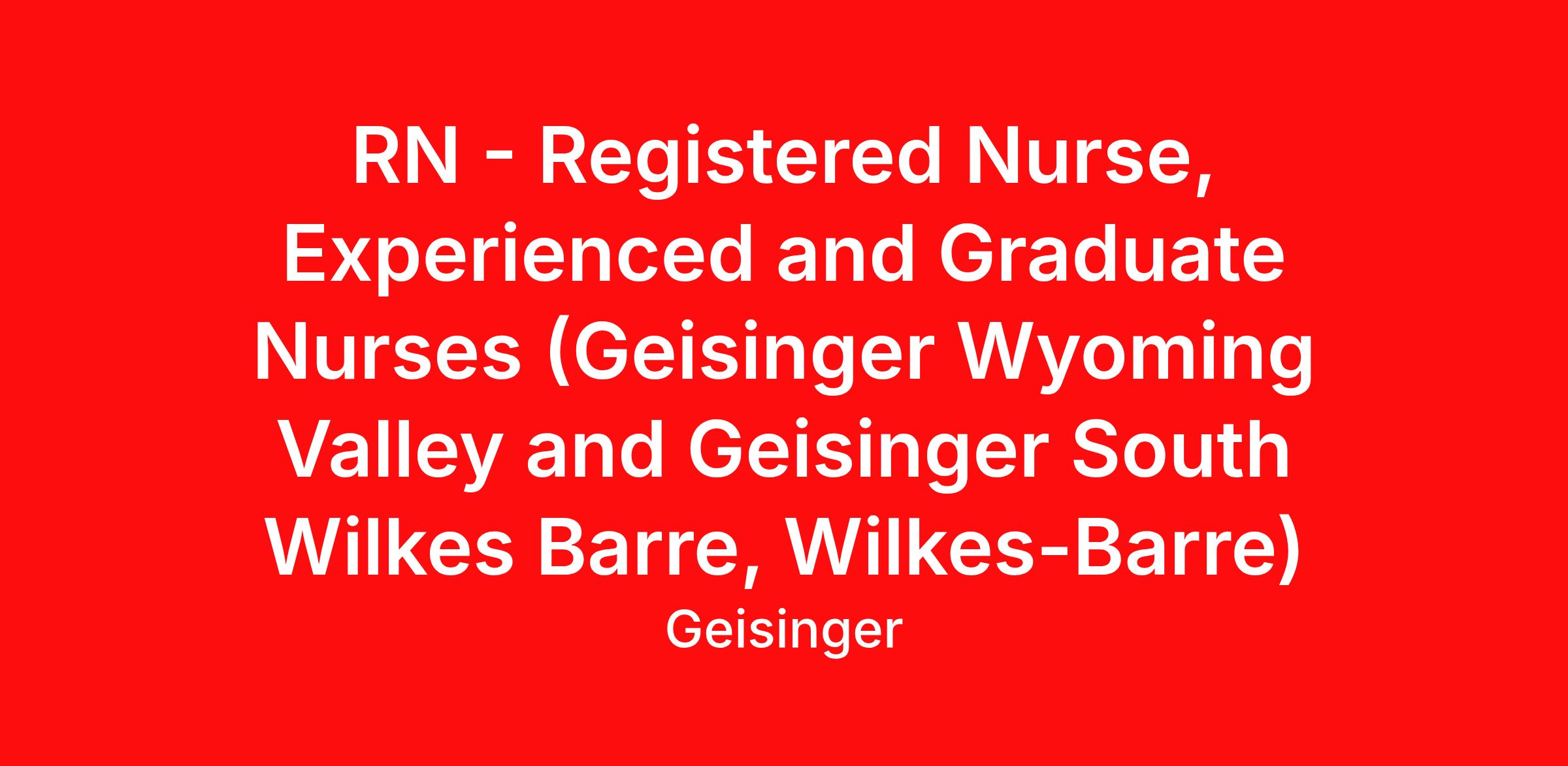 RN - Registered Nurse, Experienced and Graduate Nurses (Geisinger Wyoming Valley and Geisinger South Wilkes Barre, Wilkes-Barre)