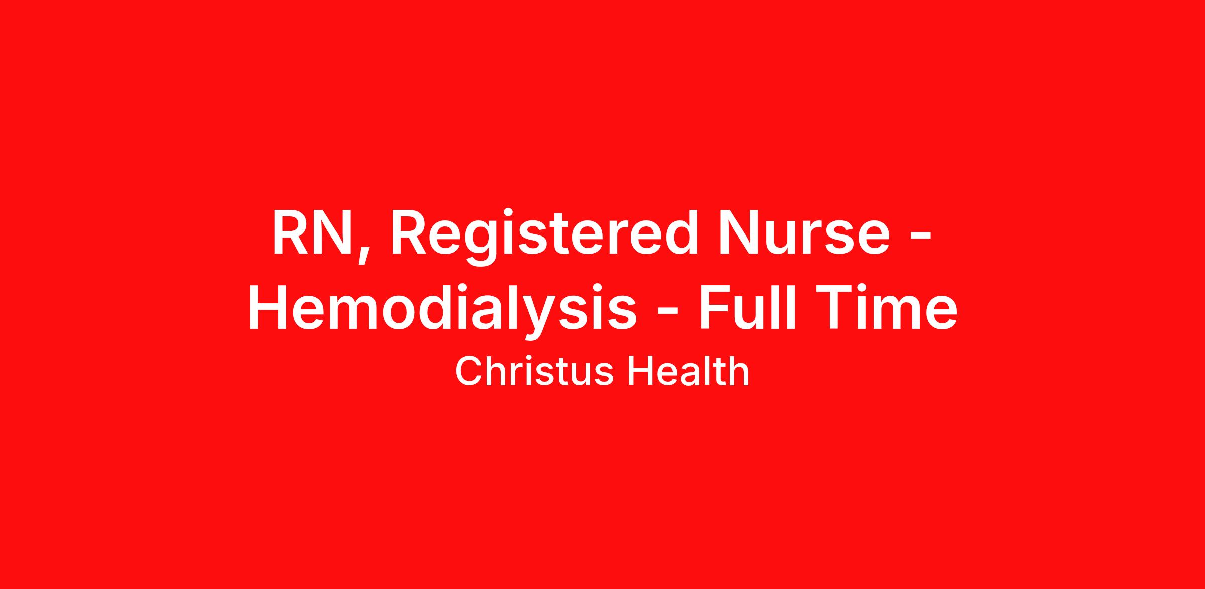 Description Summary: A Registered Professional Dialysis Nurse is responsible for the delivery of safe, high-quality patient care through the processes of assessment, diagnosis, planning, implementation, and evaluation. This role actively participates in the development and implementation of individualized care plans for each patient, providing both direct and indirect care throughout the dialysis treatment process, including pre- and post-treatment assessments and the administration of prescribed medications. In addition, the Registered Professional Dialysis Nurse ensures the safe and efficient operation of dialysis equipment and supplies in accordance with hospital and departmental policy, applying principles of stewardship to minimize waste, optimize use of resources, and preserve the integrity of supplies and equipment. Documentation in the medical record must be accurate, timely, and reflective of both patient outcomes and prudent resource management. By combining clinical excellence with responsible stewardship, this role supports the delivery of high-value, sustainable dialysis care. Responsibilities: Meets expectations of the applicable OneCHRISTUS Competencies: Leader of Self, Leader of Others, or Leader of Leaders. Demonstrates appropriate hand hygiene, use of PPE, and facility hygiene, including cleaning and disinfection of work surfaces and equipment—pre-treatment, intra-treatment, and post-treatment. Operates all available dialysis equipment and supplies based on safety, effectiveness, and cost in accordance with organizational policy to provide expected patient outcomes; documents in the medical record and records change appropriately. Follows policy and procedure in performance of water treatment procedures and testing; properly demonstrates electrolyte addition to acid concentrate per physician order. Provides documented pre- and post-dialysis nursing assessments that include but are not limited to: patient weight and fluid removal calculations, lung sounds and presence of edema, vital signs, review of current labs, and assessment and care of the dialysis access. Obtains pre- and post-dialysis lab specimens per physician order and organizational policy. Initiates, monitors, and terminates each dialysis treatment per organizational policy and procedure. Follows organizational policy and procedure in response to dialysis-related complications, emergencies, and technical issues. Nurses are required to obtain approval from leadership identified per organizational policy, for lab culture collection from dialysis catheters via the House Supervisor prior to specimen collection. Follows organizational policy and procedure in the administration of all medications during dialysis, including as-needed (PRN) medications, blood and blood products, and erythropoiesis-stimulating agents (ESAs). Ensures patients are transported in a timely manner to and from dialysis treatments to minimize delays in care and maintain treatment schedules. Nurses should transport patients themselves when necessary to prevent delays in care or to ensure timely discharge. Participates in the development and implementation of an individualized plan of care for each patient. Verifies the safety of each dialysis treatment by performing and documenting required equipment safety checks, including acid and bicarb expiration dates and chlorine/chloramine testing before every treatment and Minncare residual testing as needed. Responsible for accurately entering charges for each patient they provide care for, ensuring timely and complete documentation of billable services in accordance with departmental procedures. Manages time so that workflow is efficient and consistent. Perform other duties as assigned. Requirements: Education/Skills Associate’s degree in nursing required Bachelor’s degree in Science in Nursing (BSN) preferred Experience 1 year of dialysis experience required 1 year of acute clinical experience as a registered nurse preferred Intensive Care Unit (ICU), Critical Care Unit (CCU), Emergency Room (ER), or Medical Surgical (Med Surg) experience is preferred Clinical patient care experience in a relevant setting preferred Licenses, Registrations, or Certifications RN license in the state of employment or compact required BLS required ACLS required PALS required at CHRISTUS Children’s Hospital In accordance with the CHRISTUS Health License, Certification and Registration Verification Policy, all Associates are required to obtain the required certifications for their respective positions within the designated time frame. Work Schedule: 3 Days - 12 Hours Work Type: Full Time
