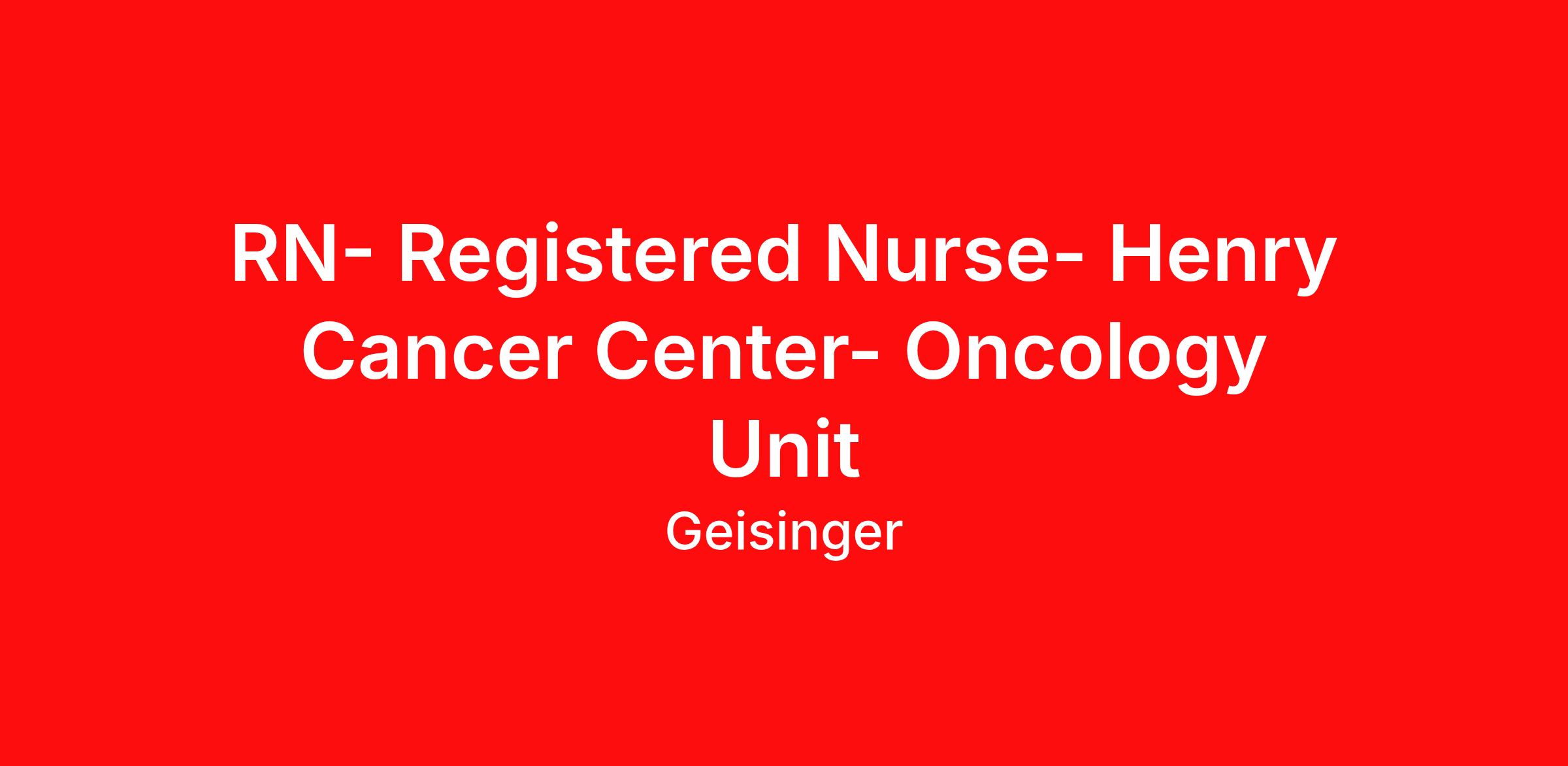 RN- Registered Nurse- Henry Cancer Center- Oncology Unit