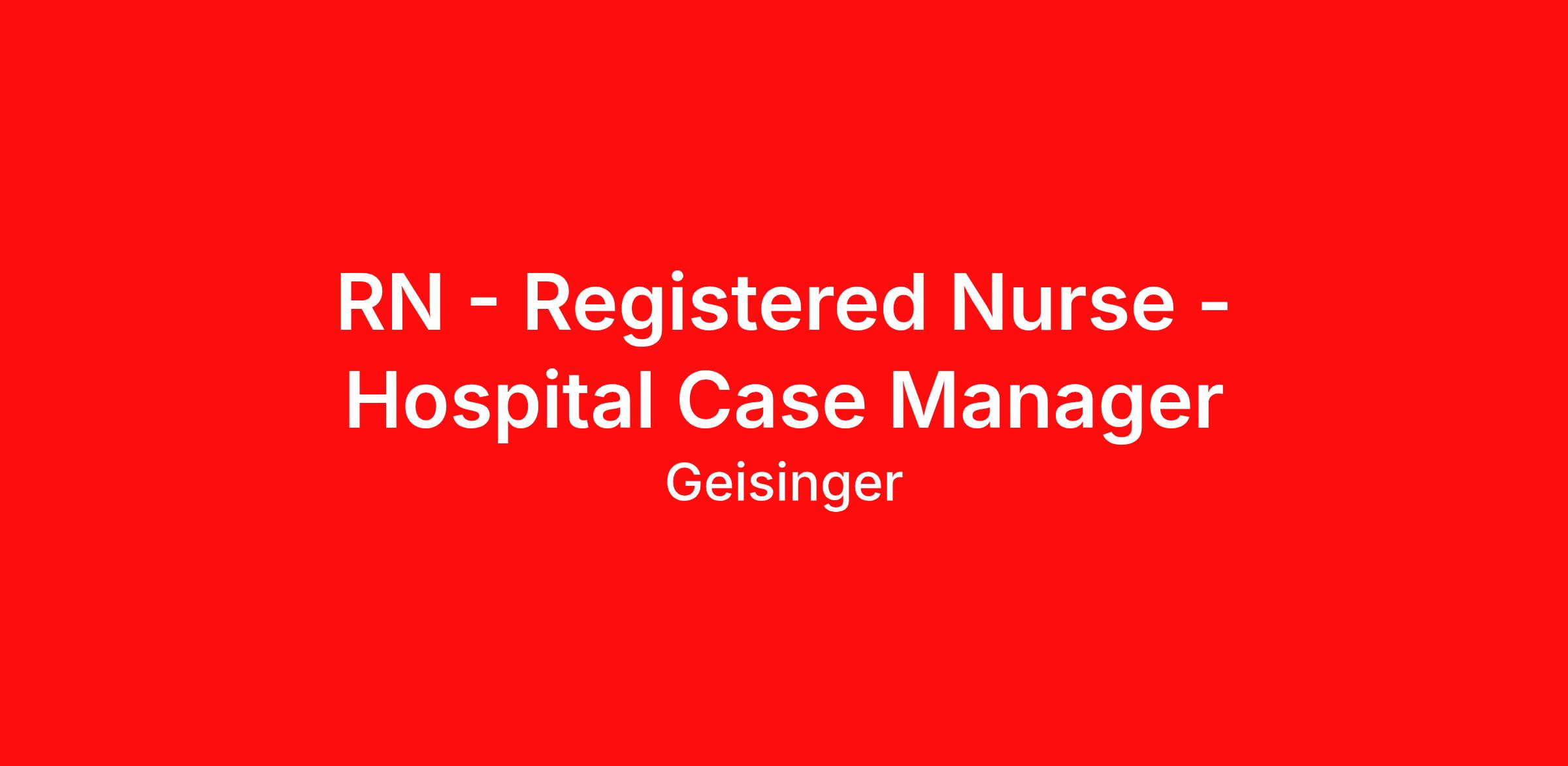 RN - Registered Nurse - Hospital Case Manager