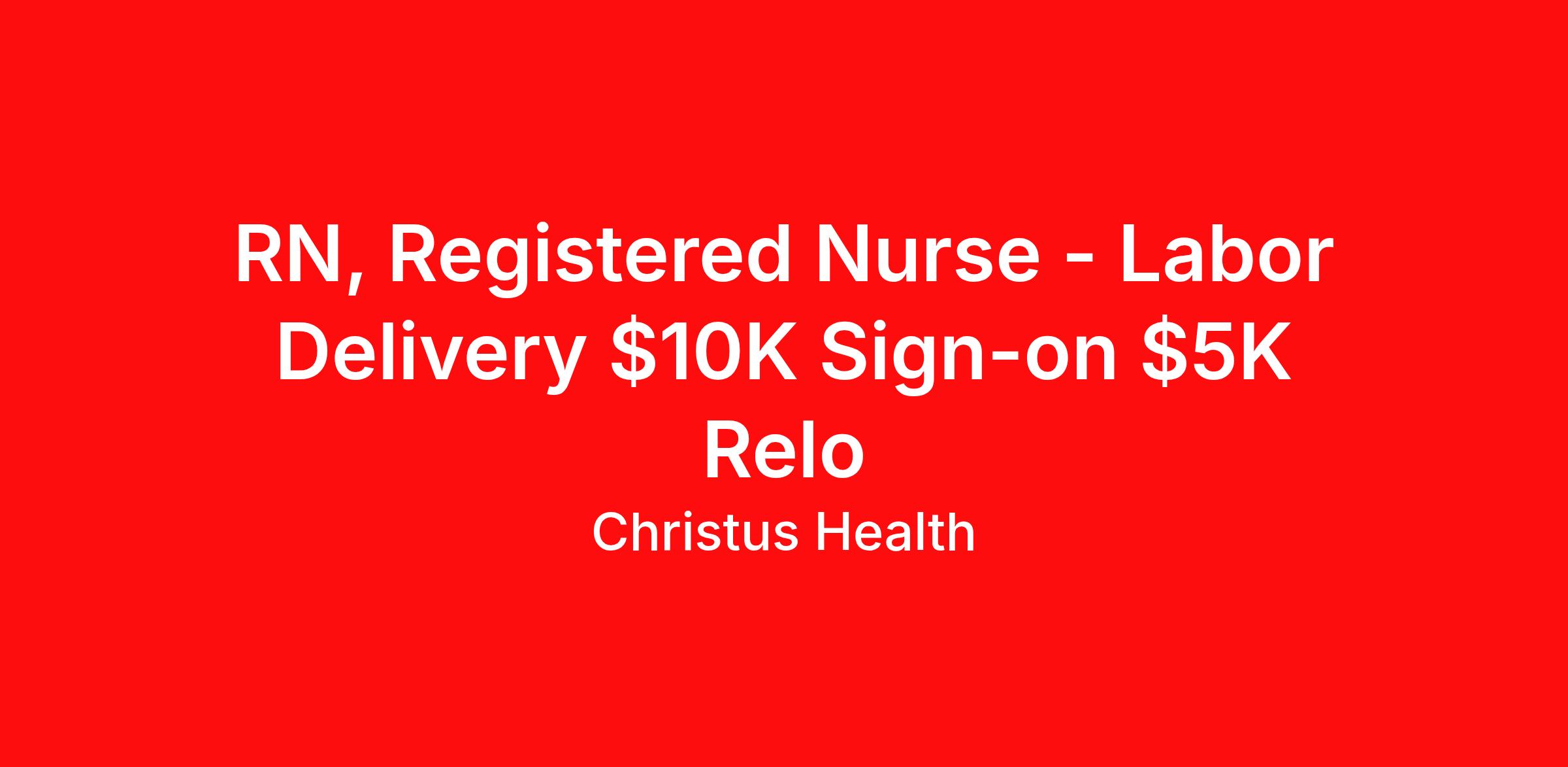 RN, Registered Nurse - Labor Delivery $10K Sign-on $5K Relo