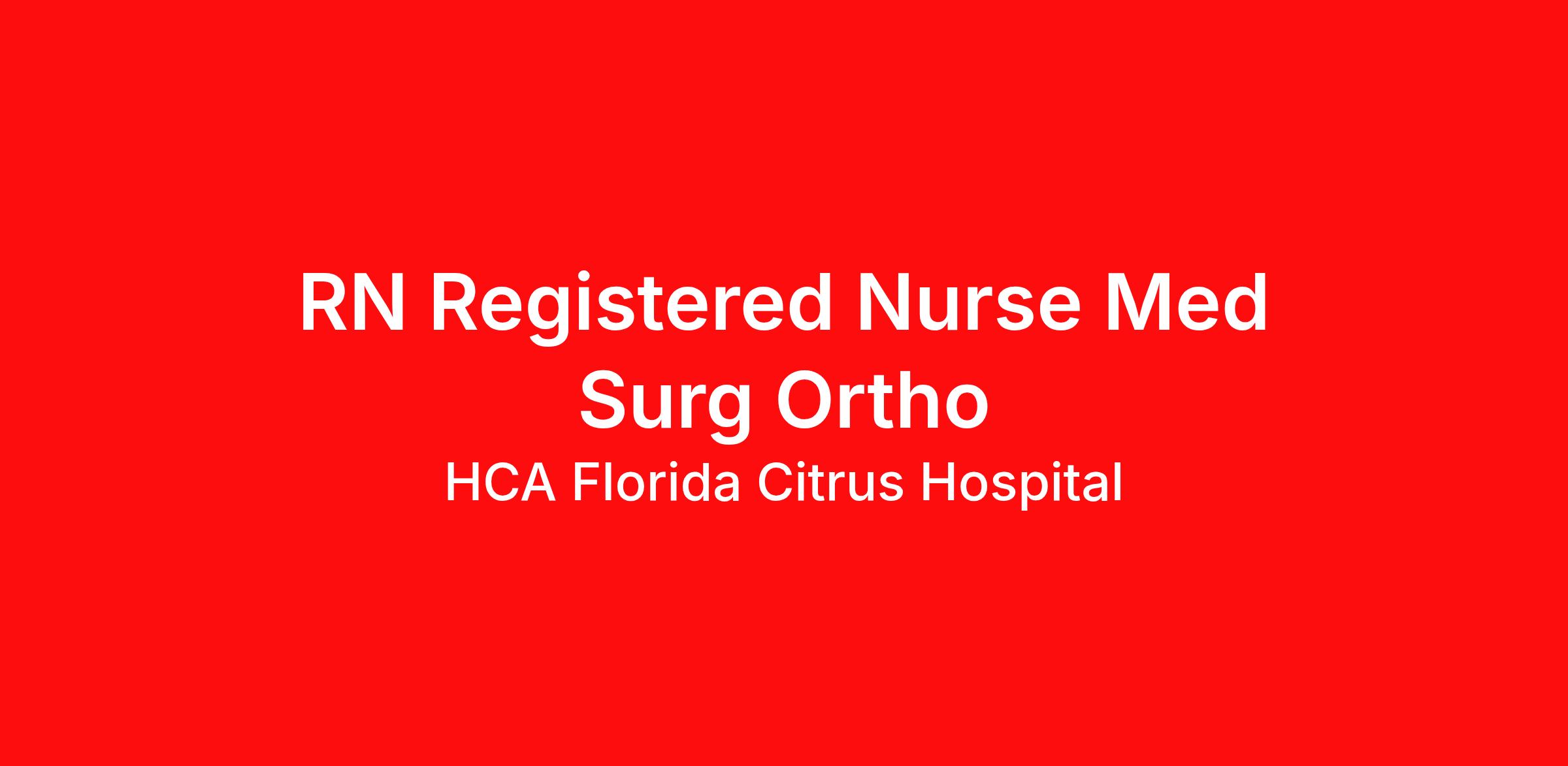 Introduction Do you have the career opportunities as a(an) RN Registered Nurse Med Surg Ortho you want in your current role? We invest in what matters most to nurses like you – at home, at work, and at every stage in your career. We have an exciting opportunity for you to join HCA Florida Citrus Hospital which is a part of the nation’s leading provider of healthcare services, HCA Healthcare. Sign-on bonuses available for select positions. Connect with a Recruiter today to learn about our current sign-on bonus offerings. Benefits HCA Florida Citrus Hospital, offers a total rewards package that supports the health, life, career and retirement of our colleagues. The available plans and programs include: Comprehensive medical coverage that covers many common services at no cost or for a low copay. Plans include prescription drug and behavioral health coverage as well as free telemedicine services and free AirMed medical transportation. Additional options for dental and vision benefits, life and disability coverage, flexible spending accounts, supplemental health protection plans (accident, critical illness, hospital indemnity), auto and home insurance, identity theft protection, legal counseling, long-term care coverage, moving assistance, pet insurance and more. Free counseling services and resources for emotional, physical and financial wellbeing 401(k) Plan with a 100% match on 3% to 9% of pay (based on years of service) Employee Stock Purchase Plan with 10% off HCA Healthcare stock Family support through fertility and family building benefits with Progyny and adoption assistance. Referral services for child, elder and pet care, home and auto repair, event planning and more Consumer discounts through Abenity and Consumer Discounts Retirement readiness, rollover assistance services and preferred banking partnerships Education assistance (tuition, student loan, certification support, dependent scholarships) Colleague recognition program Time Away From Work Program (paid time off, paid family leave, long- and short-term disability coverage and leaves of absence) Employee Health Assistance Fund that offers free employee-only coverage to full-time and part-time colleagues based on income. Learn more about Employee Benefits Note: Eligibility for benefits may vary by location. Do you want to work where you have a voice? Nurses are at the forefront of our commitment to the care and improvement of human life. At HCA Healthcare, there are many ways for nurses to have a voice through professional practice councils, advisory councils, vital voices surveys, and units of distinction. We learn from our multi-generational nursing family. We partner with our Nurses at HCA Florida Citrus Hospital! Job Summary and Qualifications As a Registered Nurse, you will be responsible for delivering high-quality, patient-centered care in line with the requirements of the department and the standards of practice for the relevant state and specialty. Collaborating with medical providers and the care team, you will provide personalized, comprehensive, and compassionate care, following established nursing models such as "Assess, Perform, Teach, and Manage." You will also act as an advocate for patients, families, and caregivers, embodying the organization's vision, mission, and values to ensure an outstanding patient experience and positive clinical outcomes. What you will do in this role: You will assess, plan, intervene and evaluate the care of Post-Orthopedic Surgical patients. You will instruct patients and families regarding medications and treatment instructions. You will maintain and review patients’ records including posting tests and examination results. You will administer medications in accordance with physician orders. What qualifications you will need: Must be licensed as a Florida Registered Nurse in accordance with state regulations or appropriate compact licensure. If compact license held, active FL RN license required within 60 days of hire. Nursing Diploma or ASN required; BSN preferred. Previous experience in an acute care setting strongly preferred. Current American Heart Association BLS (Basic Life Support) certification required. Critical thinking, service excellence and good interpersonal communication skills, ability to read/comprehend written instructions, ability to follow verbal instructions, PC skills. Since 1957, HCA Florida Citrus Hospital has grown from a single community hospital into a regional powerhouse with over 200 licensed beds. We are proud to be celebrating over 50 years of healing as the leading provider of healthcare in the surrounding area. We offer 24-hour emergency room services, heart and vascular care, orthopedic and spine care, women's services, primary stroke center, minimally invasive surgery including robotics and bariatrics. We also offer outpatient wound care, diagnostics, laboratory and rehab services. We are the home of Citrus county's most comprehensive Heart and Vascular Center. Our Heart and Vascular Center is known for its innovative design and outstanding clinical outcomes. At Citrus Hospital, our patients become our family. You may recognize many of our colleagues. They're your neighbors and friends. Over 80 of our colleagues were recently celebrated with the 10 years of service award. That's the advantage of receiving care in a community hospital that offers more personalized care. We have been consistently top-rated in surgical excellence. We believe excellent people make excellence happen. If this sounds like the type of meaningful work you'd like to be a part of, we hope you'll consider a career at Citrus Hospital. HCA Healthcare has been named one of the World's Most Ethical Companies by Ethisphere Institute for ten consecutive years (2010-2019). In 2019, HCA Healthcare spent an estimated $3.7 billion in cost for the delivery of charitable care, uninsured discounts, and other uncompensated expenses. "Bricks and mortar do not make a hospital. People d