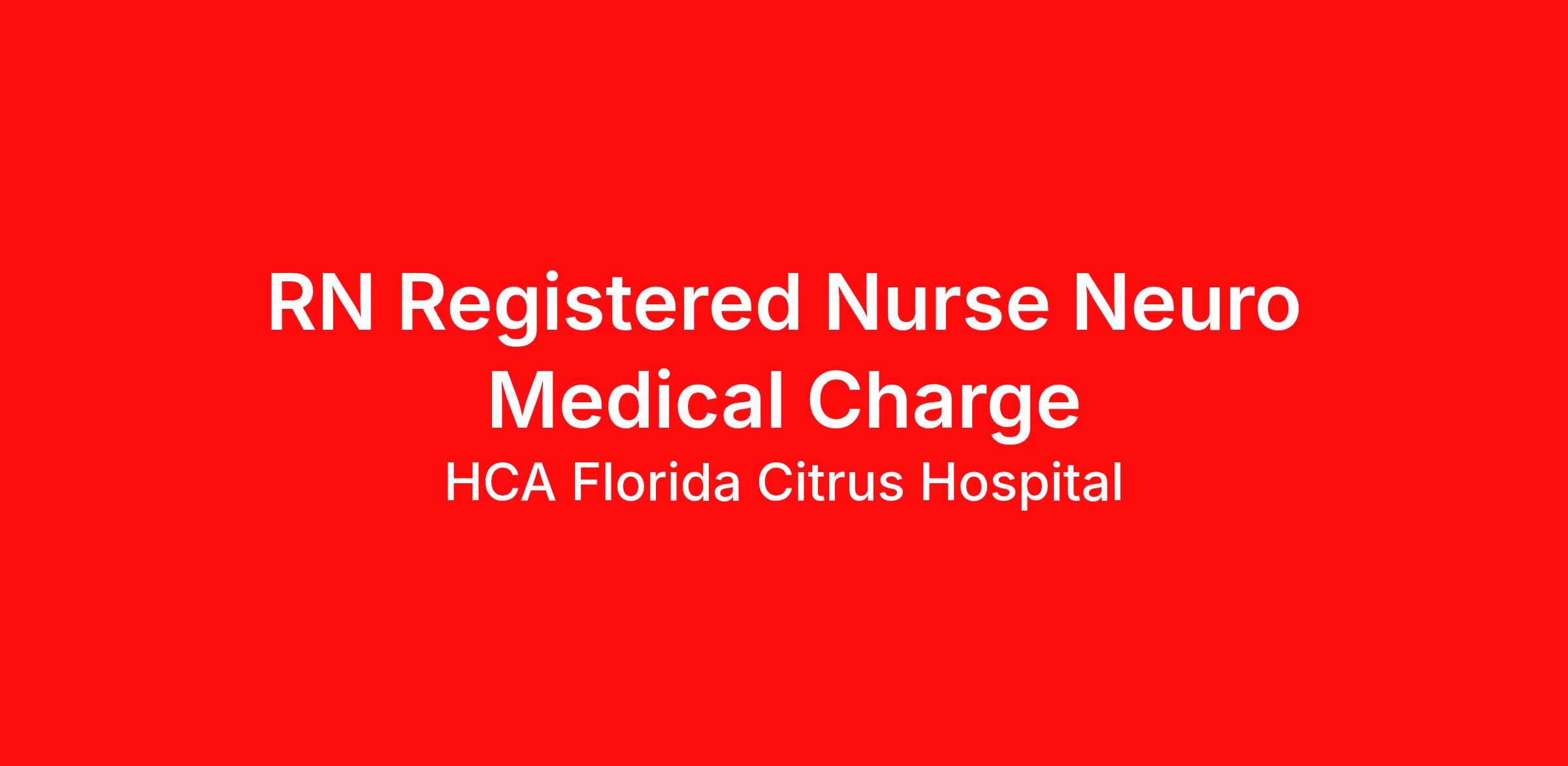 As a RN Registered Nurse Neuro Medical Charge, your voice to influence patient care is valued and empowered at every turn –whether through open, collaborative relationships with your direct manager or more formal opportunities through hospital councils and national nursing initiatives. You'll help shape decisions that elevate both patient outcomes and the future of nursing. Job Summary and Qualifications We are seeking a Charge Medical Surgical Registered Nurse. You will provide clinical expertise to ensure all patients receive high quality, efficient care in a medical surgical environment as a leader. We are an amazing team that works hard to support each other and are seeking a phenomenal addition like you who feels patient care is as meaningful as we do. Take the next step in your nursing career. What you will do in this role: You will assess, plan, intervene and evaluate the care of Med/Surg patients. You will instruct patients and families regarding medications and treatment instructions You will maintain and review patients’ records including posting tests and examination results You will administer medications in accordance with physician orders You will provide leadership to your nursing team during your designated shift Requirements: Must be licensed as a Florida Registered Nurse in accordance with state regulations or appropriate compact licensure. If compact license held, active FL RN license required within 60 days of hire. Nursing Diploma or ASN required; BSN Preferred Current BLS required Minimum 1 year RN experience in acute care setting preferred Critical thinking, service excellent and good interpersonal communication skills, ability to read/comprehend written instructions, ability to follow verbal instructions, PC skills Benefits HCA Florida Citrus Hospital, offers a total rewards package that supports the health, life, career and retirement of our colleagues. The available plans and programs include: Comprehensive benefits for medical, prescription drug, dental, vision, behavioral health and telemedicine services Wellbeing support, including free counseling and referral services Time away from work programs for paid time off, paid family leave, long- and short-term disability coverage and leaves of absence Savings and retirement resources , including a 401(k) Plan with a 100% match on 3% to 9% of pay (based on years of service), Employee Stock Purchase Plan, flexible spending accounts, preferred banking partnerships, retirement readiness tools, rollover support and financial wellbeing counseling Education support through tuition assistance, student loan assistance, certification support, dependent scholarships and a partnership with Galen College of Nursing Additional benefits for fertility and family building, adoption assistance, life insurance, supplemental health protection plans, auto and home insurance, legal counseling, identity theft protection and consumer discounts Learn more about Employee Benefits Note: Eligibility for benefits may vary by location. "Nurses play a pivotal role and are the backbone of healthcare delivery. At HCA Healthcare, we are dedicated to ensuring nurses have necessary tools and resources to provide world-class patient care, advocating for the profession and helping to shape the future of nursing." Sammie Mosier, DHA, MA, BSN, NE-BC Senior Vice President and Chief Nursing Executive, HCA Healthcare Since 1957, HCA Florida Citrus Hospital has grown from a single community hospital into a regional powerhouse with over 200 licensed beds. We are proud to be celebrating over 50 years of healing as the leading provider of healthcare in the surrounding area. We offer 24-hour emergency room services, heart and vascular care, orthopedic and spine care, women's services, primary stroke center, minimally invasive surgery including robotics and bariatrics. We also offer outpatient wound care, diagnostics, laboratory and rehab services. We are the home of Citrus county's most comprehensive Heart and Vascular Center. Our Heart and Vascular Center is known for its innovative design and outstanding clinical outcomes. At Citrus Hospital, our patients become our family. You may recognize many of our colleagues. They're your neighbors and friends. Over 80 of our colleagues were recently celebrated with the 10 years of service award. That's the advantage of receiving care in a community hospital that offers more personalized care. We have been consistently top-rated in surgical excellence. We believe excellent people make excellence happen. If this sounds like the type of meaningful work you'd like to be a part of, we hope you'll consider a career at Citrus Hospital. HCA Healthcare has been named one of the World's Most Ethical Companies by Ethisphere Institute for ten consecutive years (2010-2019). In 2019, HCA Healthcare spent an estimated $3.7 billion in cost for the delivery of charitable care, uninsured discounts, and other uncompensated expenses. If this opportunity is your next step in your career path, we encourage you to apply for our RN Registered Nurse Neuro Medical Charge opening. We review all applications. Qualified candidates will be contacted by a member of our team. We are interviewing, apply today! We are an equal opportunity employer. We do not discriminate on the basis of race, religion, color, national origin, gender, sexual orientation, age, marital status, veteran status, or disability status.