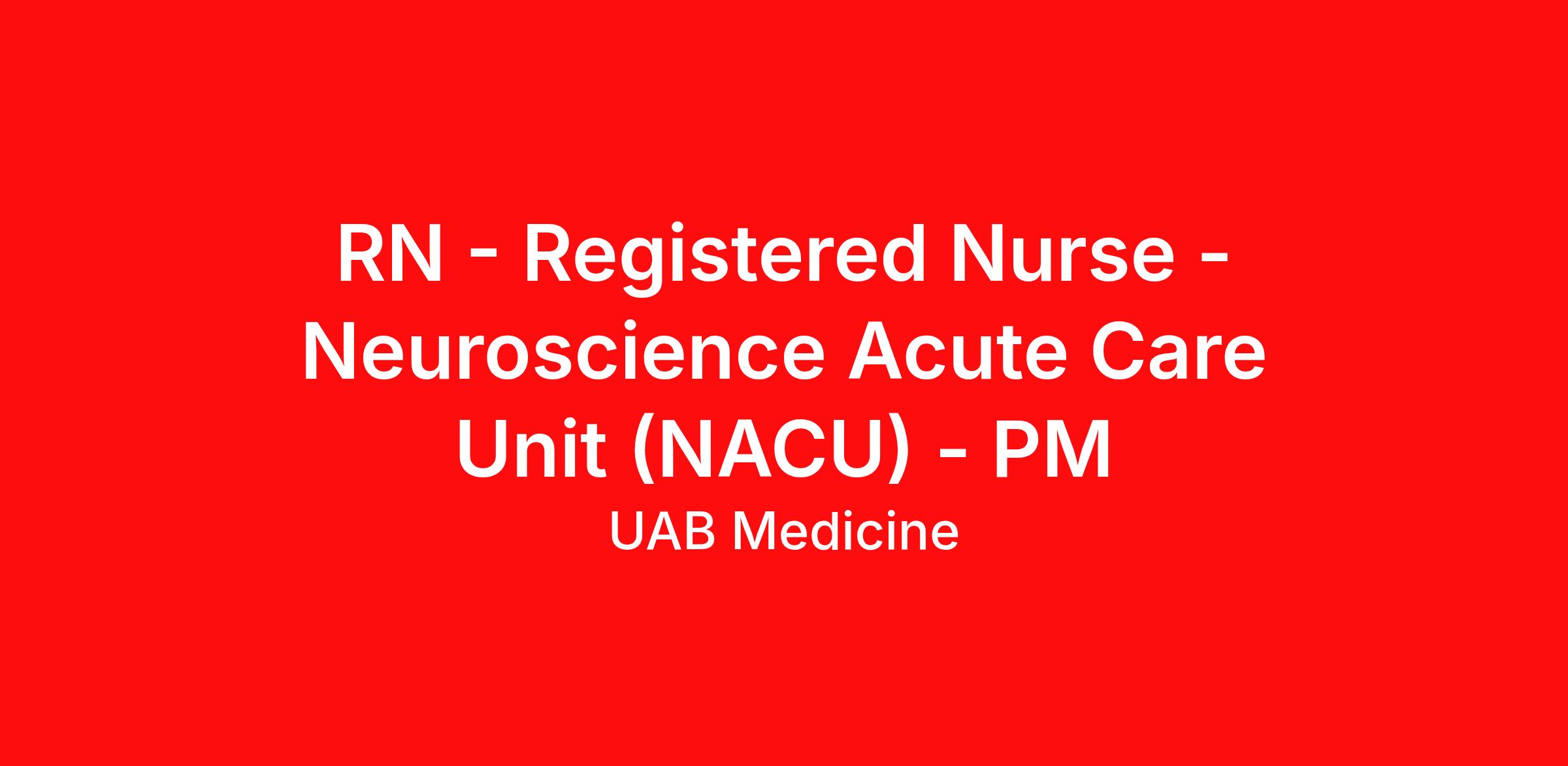 Position Overview Pay range: $30.00 - $48.00 / hour Shifts: full-time and part-time PM, weekends PM Schedules: 7 p.m.-7 a.m. Benefits and perks available for eligible positions include: robust educational assistance programs, generous paid time off, employee assistance and wellness programs, paid parental leave, qualifying employer for the Public Service Loan Forgiveness (PSLF) Program, plus more. Job Highlights The Neurosurgery Acute Care Unit (NACU) is a 25-bed acute care unit that provides care for general neurology and post-surgical neurosurgery patients. Our NACU team also provides specialized care for patients with neurological disorders, including epilepsy, myasthenia gravis (MG), Guillain-Barré syndrome (GBS), encephalopathy, and multiple sclerosis (MS), as well as patients recovering from strokes and brain or spinal surgeries UAB Neurology and Neurosurgery is consistently ranked among the top 50 programs of its kind nationally by U.S. News & World Report , which also has ranked UAB’s program as No. 1 in Alabama. UAB is also Alabama’s first Comprehensive Stroke Center , so as soon as patients arrive, we are prepared to deliver the latest stroke treatment. Additionally, UAB has earned The Joint Commission’s Gold Seal of Approval® for Advanced Certification in Spine Surgery, demonstrating UAB Hospital’s dedication to continuous compliance with The Joint Commission’s state-of-the-art standards. UAB Medicine is also home to Alabama’s only Level IV Epilepsy Center , the highest designation available from the National Association of Epilepsy Centers. Job Description To utilize the nursing process to care and/or counsel individuals in the promotion and maintenance of health and the prevention of illness and injury. Using a systematic critical-thinking approach to guide data gathering, assessment, nursing judgment, intervention and evaluation of human responses to actual and potential health problems through activities such as health teaching, health counseling and the provision of care supportive and restorative of life and supportive of a peaceful death. To identify patient needs using the American Association of Critical Care Nurses (AACN) Synergy Model. To delegate, coordinate and manage all aspects of nursing care provided to the patient, their family and our community in a timely and cost-effective manner. To deliver patient care in collaboration with the patient, their family and all members of the health care team and with the knowledge of a licensed physician, psychologist, podiatrist, and/or dentist. Qualifications Graduate from an accredited Nursing Program required. Work experience may NOT substitute for education requirement. Currently licensed or licensed by endorsement as a Registered Nurse (RN) by the Alabama Board of Nursing required. Certified in Basic Life Support (BLS) from the American Heart Association (AHA) is required or should be obtained within 30 days of employment. Depending on the unit/department, Advanced Cardiac Life Support (ACLS) certification and/or Pediatric Advanced Life Support (PALS) from the American Heart Association (AHA) may be required. Why Work at UAB Medicine We are UAB Medicine, Alabama’s largest and most comprehensive health system, recognized nationally for delivering world-class patient care, pioneering research, and cutting-edge medical education. We proudly serve more than 1.1 million patients each year – from every county in Alabama, all 50 states, and many countries around the world. Our network spans numerous hospitals, emergency departments, more than 67 other sites of care, and a team of over 2,200 physicians. Our key facilities include UAB Hospital – ranked the No. 1 hospital in Alabama by U.S. News & World Report and home to the state’s only ACS-verified Level I adult trauma center and Magnet-designated hospital – along with UAB Hospital-Callahan Eye and five UAB St. Vincent’s hospitals serving central Alabama. UAB Medicine offers careers across a wide range of practice environments, from our internationally renowned academic medical center and award-winning community hospitals to our primary and specialty care clinics across the state. Whether you’re seeking the fast-paced learning environment of a tertiary care setting or the close-knit environment of a community facility, there’s a place for you on our team where you can become part of a mission-driven organization committed to delivering life-changing care. With nearly every medical specialty represented and unlimited opportunities for growth, you’ll find the right fit for your skills and career goals. We care for you by offering comprehensive, industry-leading benefit packages to support the individual preferences and circumstances of our diverse staff.