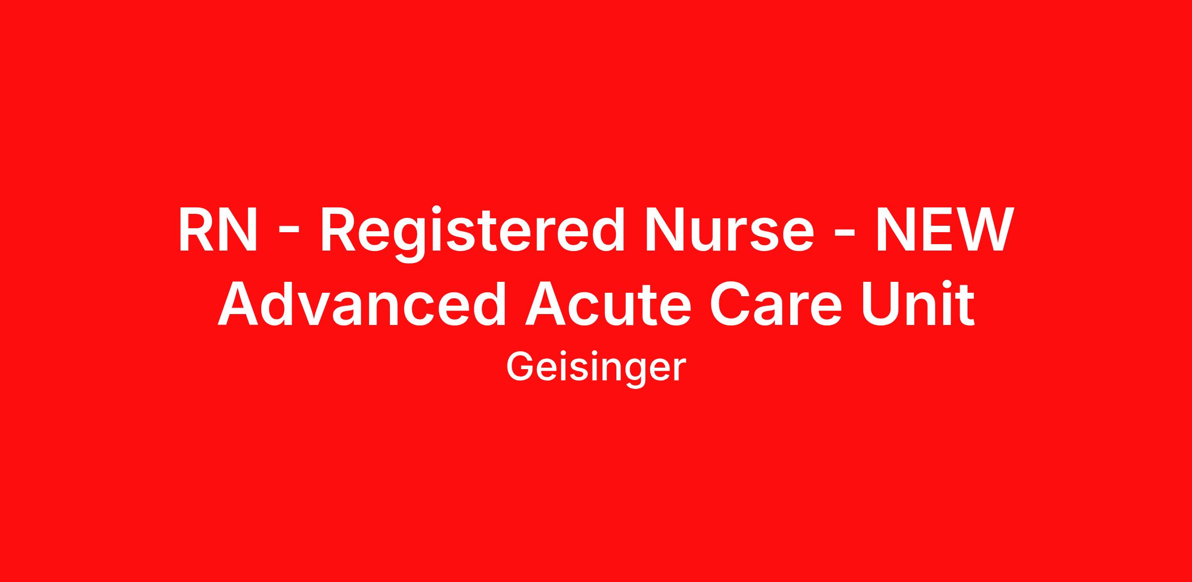 RN - Registered Nurse - NEW Advanced Acute Care Unit
