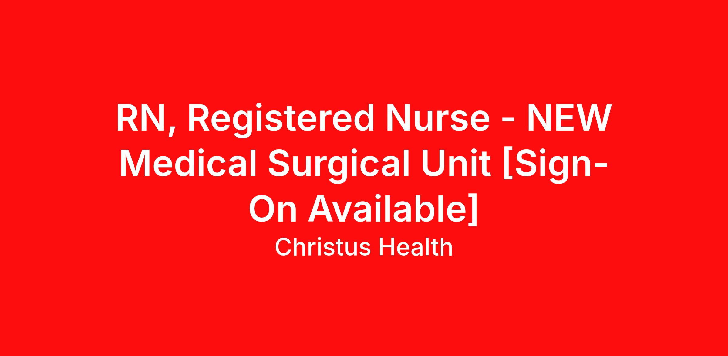 RN, Registered Nurse - NEW Medical Surgical Unit [Sign-On Available]