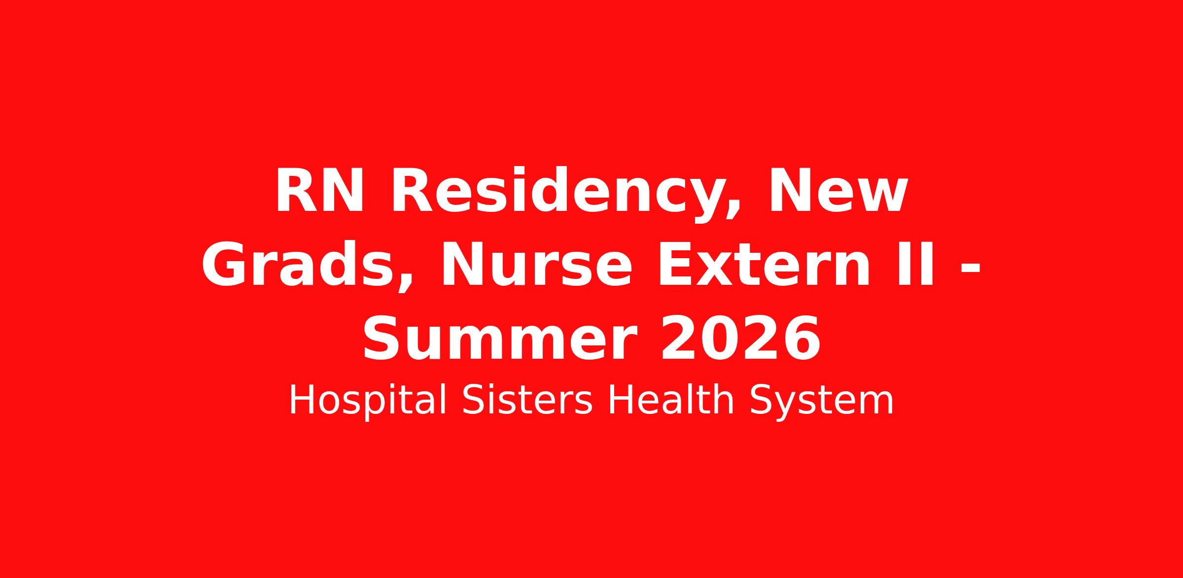 Pay Range: $34.00 - $51.00 A successful candidate's actual pay rate will be based on several factors including relevant experience, skills, training, certifications and education. Now is the best time to start your career as a Registered Nurse (RN)! HSHS is seeking passionate and dedicated individuals to join our healthcare team. This is an excellent opportunity for newly graduated nurses looking to transition into a rewarding nursing career. You are eligible to start as a Nurse Extern II during your final semester and transition right into an RN position once you become license pending! Position Specifics: Departments: Various Units Core Function: Nursing Students Schedule: Full time, 36 hrs/wk, Nights (7:00 PM – 7:00 AM) | Weekend and holiday rotation Facility: St John’s Hospital Location: Springfield, IL Sign On Bonus: up to $20,000 for approved units Compensation that aligns with your experience Education Qualifications Graduate from an accredited and approved school of nursing accepted for licensure in the state of practice is required. Bachelor’s Degree in Nursing is preferred. Experience Qualifications Previous healthcare or service industry experience is preferred. Certifications, Licenses and Registrations Illinois: License pending designation in Illinois is required as permitted in the CTS letter. Obtaining licensure within 90 days from the official date of passing the licensure exam is required. Wisconsin: Temporary Permit is required. Obtaining licensure within three months of temporary permit issue date is required. A temporary permit may be renewed once for an additional three-month period. Basic Life Support (BLS) is required. Job Description Scheduled Weekly Hours: 36 Throughout communities in Illinois and Wisconsin, 13 hospitals, numerous community-based health centers and clinics, our 13,000 colleagues have built a culture based on our solid core values of respect, care, competence, and joy. These are the ideals we believe in, work by, and live each day. Built upon more than 145 years of service to the communities we serve, we now look to the future and our place in it as a health care system that strives to continually improve processes, procedures, and outcomes with the latest and most advanced technologies and treatments. Regardless of how far our passion for excellence carries us, our focus will always remain on the most important person in our entire organization: The patient. Benefits: HSHS provides a benefits package designed to support the overall well-being of our colleagues including their physical, emotional, financial, spiritual, and work health. Colleagues budgeted to work at least 32 hours per pay period are eligible for HSHS benefits. Comprehensive and affordable health coverage includes medical, prescription, dental and vision coverage for full-time and part-time colleagues. Paid Time Off (PTO) combines vacation, sick, and personal days into one balance to allow you the flexibility to use your time off as you need. Retirement benefits including HSHS contributions. Education Assistance benefits include up to $5,250 of educational assistance each calendar year and tuition discounts to select colleges with no waiting period. Adoption Assistance provides financial support up to $7,500 for colleagues growing their families through adoption to reimburse application and legal fees, transportation, and more! Other benefits include: Wellness program with incentives, employer-paid life insurance and short-term and long-term disability coverage, flexible spending accounts, employee assistance program, ID theft coverage, colleague rewards and recognition program, discount program, and more! Benefits HSHS and affiliates is an Equal Opportunity Employer (EOE). HSHS is proud to be an equal opportunity workplace dedicated to pursuing and hiring a diverse workforce.