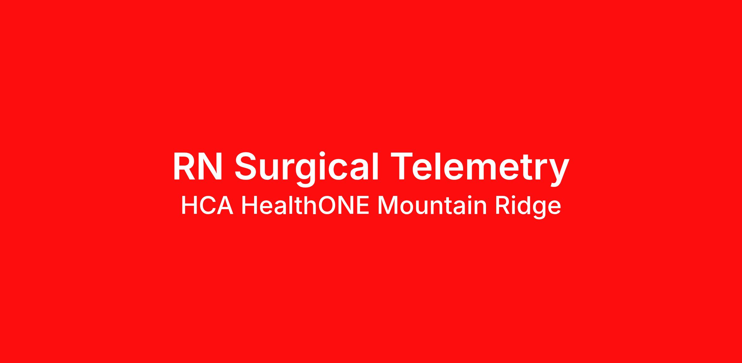 Hourly Wage Estimate: $36.50 - $53.25 / hour Learn more about the benefits offered for this job. The estimate displayed represents the typical wage range of candidates hired. Factors that may be used to determine your actual salary may include your specific skills, how many years of experience you have and comparison to other employees already in this role. The typical candidate is hired below midpoint of the range. Strong staffing Support when it matters most. Technology and tools that streamline patient monitoring and communication to help you work more efficiently. Robust supply chains to keep you fully equipped. Ongoing clinical education to improve your skills. As a Registered Nurse at HCA HealthONE Mountain Ridge, you’ll have all the staffing support, technology and resources you need to deliver safe, high-quality care—so you can focus on what you do best. Job Summary and Qualifications As a Registered Nurse, you will be responsible for delivering high-quality, patient-centered care in line with the requirements of the department and the standards of practice for the relevant state and specialty. Collaborating with medical providers and the care team, you will provide personalized, comprehensive, and compassionate care, following established nursing models such as "Assess, Perform, Teach, and Manage." You will also act as an advocate for patients, families, and caregivers, embodying the organization's vision, mission, and values to ensure an outstanding patient experience and positive clinical outcomes. What you will do in this role: Assess the patient's condition during admission and each scheduled shift, promptly identifying and reporting any changes in patient status. Perform procedures, monitoring, or other functions as ordered by the medical provider(s), and ensure thorough and timely documentation of care administration in the patient's medical record. - Administer prescribed medications, monitor the patient for therapeutic response, and take appropriate action in the event of an unintended response to the medication. Provide exceptional care by responding promptly to patient requests, proactively anticipating patient needs, and resolving them. Educate patients, families, and caregivers about the patient's medical condition, treatment plan, medications, possible side effects, and follow-up measures, ensuring complete understanding by translating complex medical terminology. What qualifications you will need: Minimum of 1-year Acute Care experience preferred. Advanced Cardiac Life Support ACLS / Basic Cardiac Life Support BLS (RN) Registered Nurse Licensure in Colorado or Multi State Registered Nurse Diploma Benefits HCA HealthONE Mountain Ridge, offers a total rewards package that supports the health, life, career and retirement of our colleagues. The available plans and programs include: Comprehensive benefits for medical, prescription drug, dental, vision, behavioral health and telemedicine services Wellbeing support, including free counseling and referral services Time away from work programs for paid time off, paid family leave, long- and short-term disability coverage and leaves of absence Savings and retirement resources, including a 401(k) Plan with a 100% match on 3% to 9% of pay (based on years of service), Employee Stock Purchase Plan, flexible spending accounts, preferred banking partnerships, retirement readiness tools, rollover support and financial wellbeing counseling Education support through tuition assistance, student loan assistance, certification support, dependent scholarships and a partnership with Galen College of Nursing Additional benefits for fertility and family building, adoption assistance, life insurance, supplemental health protection plans, auto and home insurance, legal counseling, identity theft protection and consumer discounts Learn more about Employee Benefits Note: Eligibility for benefits may vary by location HCA HealthONE, one of the largest and most comprehensive healthcare systems in the Rocky Mountain region, offers more than 170 care sites in the Denver-metro area. Offering services across the continuum of care to meet patients’ total healthcare needs, HCA HealthONE includes seven acute care hospitals, a dedicated flagship pediatric hospital, a rehabilitation hospital, CareNow® urgent care clinics, mental health campuses, imaging and surgery centers, physician practices, home and hospice care, and AirLife Denver, which provides regional critical care air and ground transportation. Among HCA HealthONE’s acute care hospitals is Mountain Ridge (formerly North Suburban Medical Center), a 157-bed, Level II state-designated trauma facility. Mountain Ridge strives to meet and exceed the needs of the north metro Denver communities by also providing two freestanding, full-service emergency rooms and an outpatient surgery center. Consistently among the Denver Business Journals’ list of top corporate philanthropists in the Denver-metro area, HCA HealthONE was named as one of the most community-minded organizations by The Civic 50 and contributed more than $1 million through cash and in-kind donations last year alone, along with more than $400M in federal, state and local taxes. HCA Healthcare has been recognized as one of the World’s Most Ethical Companies® by the Ethisphere Institute more than ten times. In recent years, HCA Healthcare spent an estimated $3.7 billion in costs for the delivery of charitable care, uninsured discounts, and other uncompensated expenses. "Nurses play a pivotal role and are the backbone of healthcare delivery. At HCA Healthcare, we are dedicated to ensuring nurses have necessary tools and resources to provide world-class patient care, advocating for the profession and helping to shape the future of nursing." Sammie Mosier, DHA, MA, BSN, NE-BC Senior Vice President and Chief Nursing Executive, HCA Healthcare If growth and continued learning is important to you, we encourage you to apply for our RN Surg