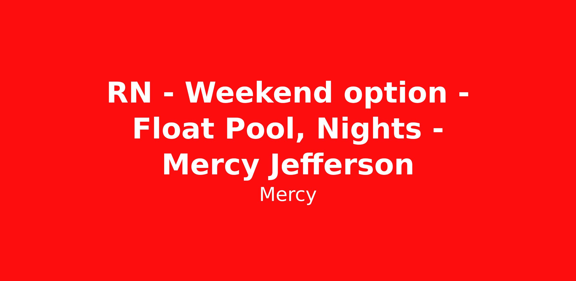 RN - Weekend option - Float Pool, Nights - Mercy Jefferson
