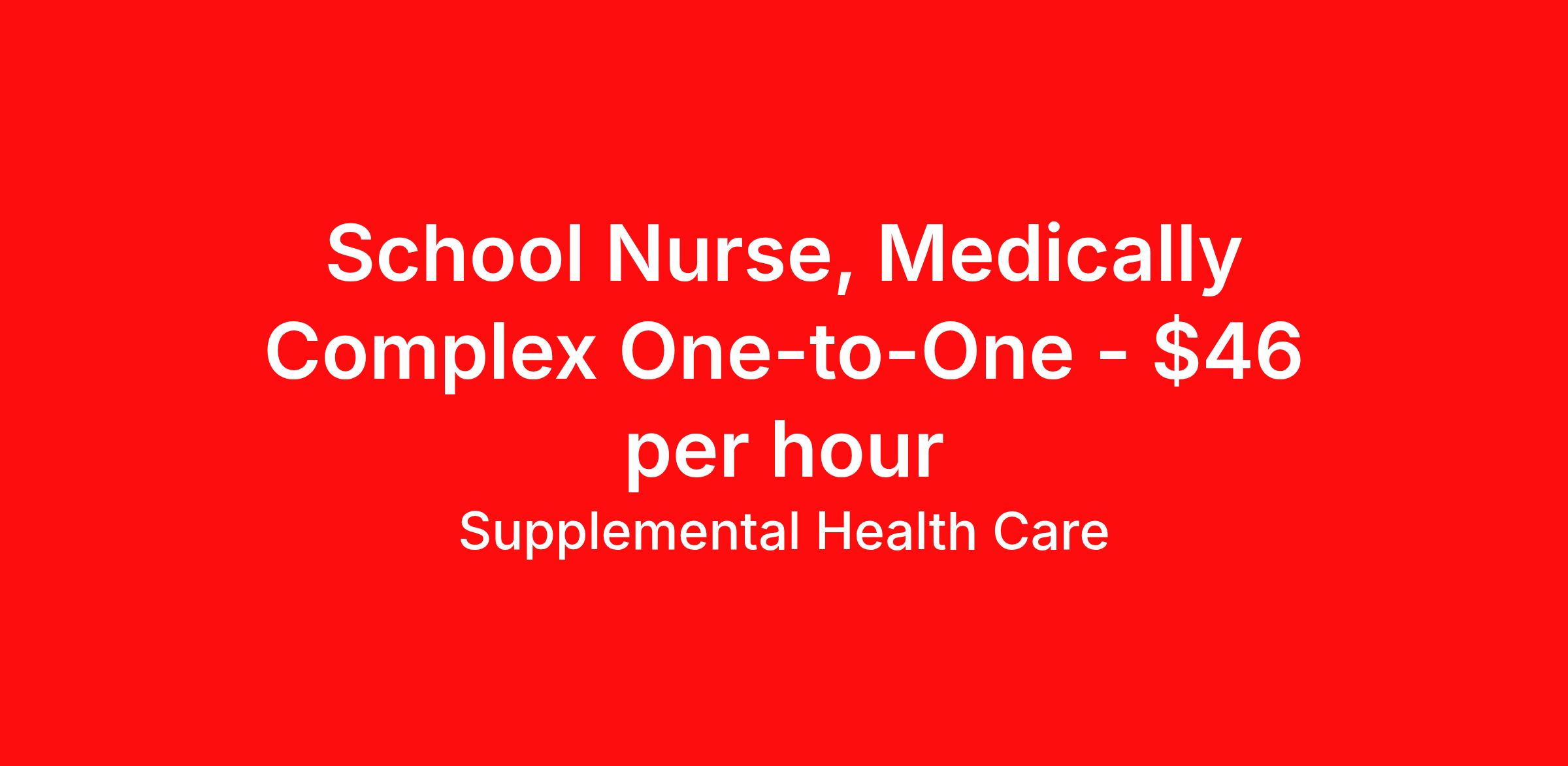 Supplemental Health Care is seeking a local contract nurse RN School RN for a local contract nursing job in Aubrey, Texas. Job Description & Requirements Specialty: School RN Discipline: RN Start Date: ASAP Duration: 13 weeks 16 hours per week Shift: 8 hours, days Employment Type: Local Contract Job Description: Make a Difference with Supplemental Health Care (SHC), we know school nurses aren’t just healthcare providers - they’re lifelines for students who need specialized care. That’s why we don’t just offer jobs, we build careers. With dedicated school-based expertise, unmatched support, and a team that champions your success, SHC helps you thrive while you help students thrive. We are partnering with a school district in Aubrey, Texas, to hire a school nurse to provide 1:1 support for a medically complex student. Qualifications: Active Registered Nurse (RN) license in Texas American Heart Association BLS Minimum of 1 year of prior nursing experience in a school or pediatric setting Compassion, patience, and a commitment to supporting students with diverse needs 1:1 Registered School Nurse Contract Details: $42.25 - $45.50 per hour Schedule: Monday–Friday, school hours Supportive, collaborative school setting Provide one to one health services, monitoring, and daily care to a student with severe disabilities Key Responsibilities: The nurse will be expected to follow medical care plans and medical orders IEP/504 plans, and provide effective and pertinent information to the special education team and student caregivers Nurse will be expected to complete daily documentation RN will be matched to student based on the nurse's medical acuity experience What We Offer: Full medical, dental, vision, life, and even pet insurance! Round the clock support. No matter where you are or what time it is, Supplemental Health Care is standing by. SHC's Share the Care referral program is the most dynamic, profitable referral program in the industry. 401(k) Retirement Savings Program with a wide range of investment options. Discounted and free online access to CEU courses through Supplemental University. Ready to Make an Impact? Apply today — and we’ll connect with you right away! Supplemental Health Care is an Equal Opportunity Employer. All candidates, including veterans and those with disabilities, are encouraged to apply. SHC will consider for employment qualified applicants with criminal histories in a manner consistent with the requirements of applicable local, state, or federal law. To learn more, visit www.shccares.com/eeo Supplemental Health Care Job ID 1466912. Pay package is based on 8 hour shifts and 16 hours per week (subject to confirmation) with tax-free stipend amount to be determined. Posted job title: School Nurse (RN) – Aubrey, Texas About Supplemental Health Care At Supplemental Health Care, a simple belief in the power of caring guides a unique commitment to world-class service in healthcare staffing. For 40 years, we’ve supported talented professionals pursuing their life calling in hospitals, schools, home health, corrections, behavioral health, and other settings. At SHC, we inspire vital connections and enrich lives and inspire better outcomes. As recipients of the Best in Staffing Awards for both Client and Talent, Supplemental Health Care is proud to be among only 2% of staffing companies singled out for the distinction based on the real feedback of our employees and the clients we serve. SHC has also earned The Joint Commission’s Gold Seal of Approval and is named among the Largest Health Care Staffing companies in the United States by Staffing Industry Analysts. We are also thrilled to recognize our very own SLP, Dr. Kelly Byrd as the American Staffing Association 2024 National Staffing Employee of the Year and Health Care Sector All-Star. We’re honored to connect Dr. Byrd to employment, share her incredible story, and support her family literacy nonprofit. For everyone that we serve, SHC is the place where caring hearts thrive. Benefits Referral bonus Benefits start day 1 401k retirement plan Continuing Education Discount program Health savings account