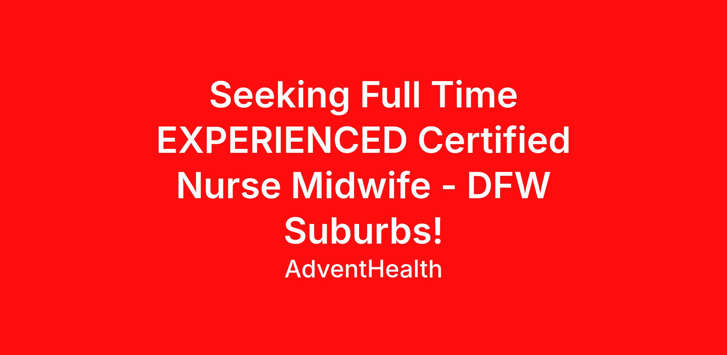 Seeking Full Time EXPERIENCED Certified Nurse Midwife - DFW Suburbs!