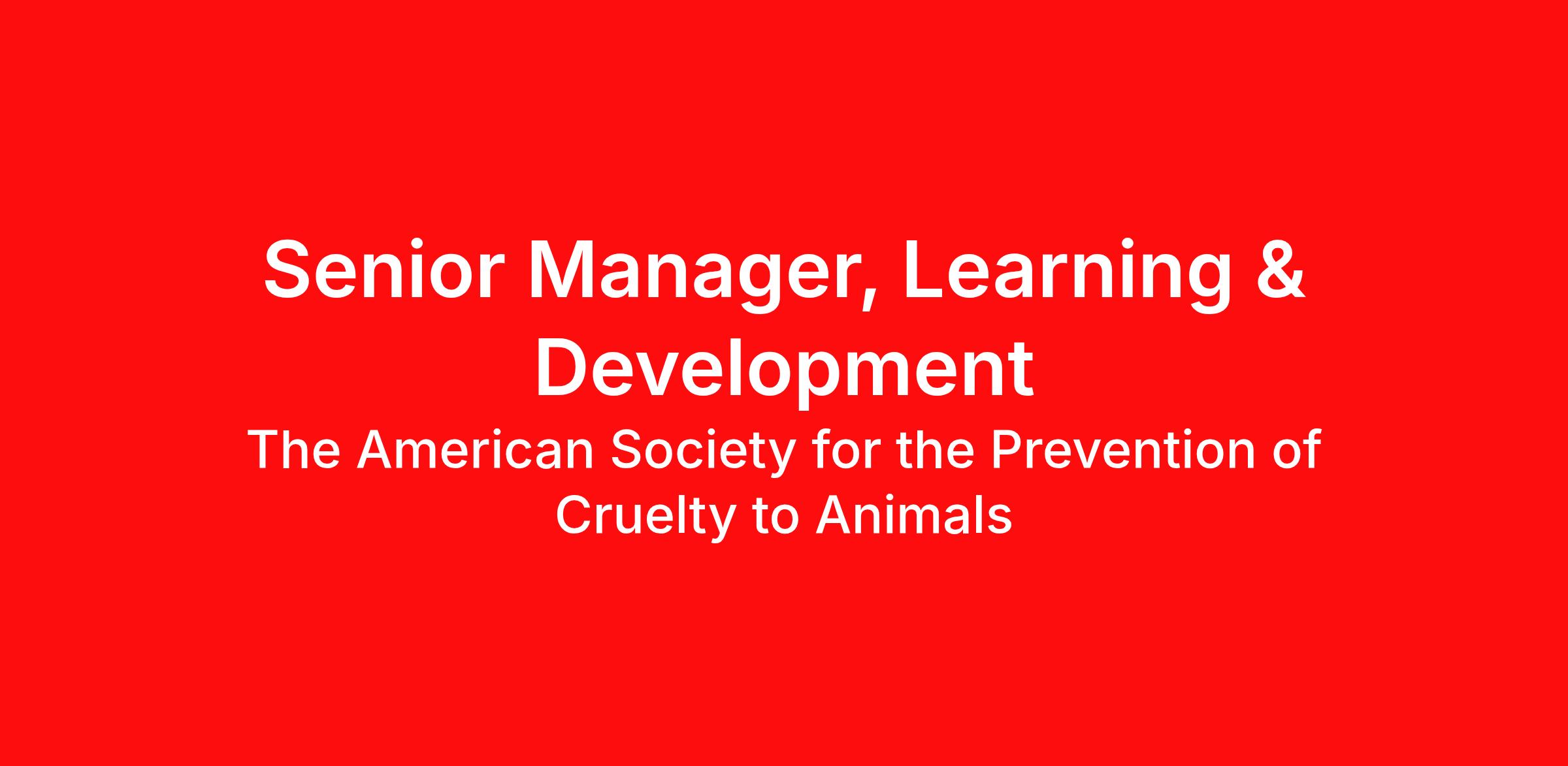 Our People ARE the ASPCA. The People Team (HR) at the ASPCA ensures that we clearly value our people because we know that to make the greatest impact on animals, we must have an engaged staff who effectively collaborate and continually develop the skills and capabilities necessary to achieve our goals. The Learning & Development team, a part of the People Team, develops leaders at every level, enables high performing teams, and cultivates an environment where everyone can learn, grow and thrive so that we can do our best work and increase our collective impact on saving more animals’ lives.