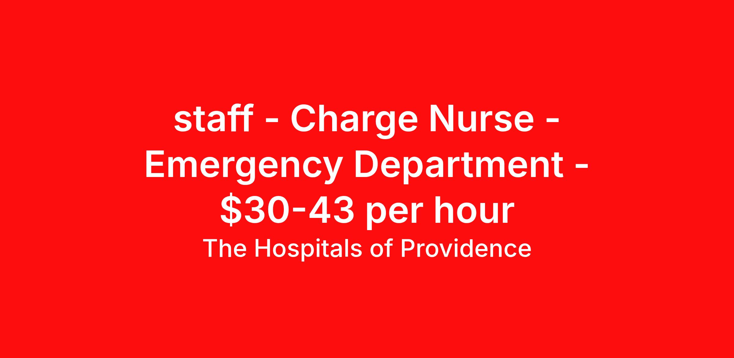 The Hospitals of Providence is seeking a ED - Emergency Department Charge Nurse (RN) for a nursing job in El Paso, Texas. Job Description & Requirements Specialty: ED - Emergency Department Discipline: RN Duration: Ongoing 36 hours per week Shift: 12 hours Employment Type: Staff Position Summary The Charge Registered Nurse is a professional nurse who coordinates, supports and supervises other Registered Nurses in the delivery of nursing care. They ensure the nursing unit runs smoothly and efficiently and oversees the transition between shifts. The Charge Registered Nurse participates in patient and family teaching, provides leadership by working cooperatively with leadership, ancillary staff and other members of the patient care team in maintaining standards of professional nursing practice in the clinical setting. The Charge Registered Nurse serves as a liaison between physicians, nurses and staff. MINIMUM EDUCATION Required-Graduate from an accredited school of nursing Preferred-Academic bachelor's or master's degree in nursing MINIMUM EXPERIENCE Required- 1 year of RN experience REQUIRED LICENSES/CERTIFICATIONS Currently authorized/licensed to practice in the State Current Healthcare Provider Basic Life Support (American Red Cross or American Heart Association) if American Red Cross, must obtain American Heart Association within 60-days of hire ACLS must be obtained by the end of the department orientation PALS must be obtained by the end of the department orientation CPI (Crisis Prevention Intervention) Certification must be obtained within 90-days of hire/transfer date TNCC within 6 months of hire/transfer date REQUIRED SKILLS, KNOWLEDGE, and ABILITIES Demonstrated proficiency and competency in acute care nursing Has effective interpersonal and communication skills and ability to serve as a role model and advocate for the professional discipline of nursing Ability to use patient care equipment and has proficient computer skills Demonstrates professionalism and aligns with leadership values LI-LG2 Tenet complies with federal, state, and/or local laws regarding mandatory vaccination of its workforce. If you are offered this position and must be vaccinated under any applicable law, you will be required to show proof of full vaccination or obtain an approval of a religious or medical exemption prior to your start date. If you receive an exemption from the vaccination requirement, you will be required to submit to regular testing in accordance with the law. The Hospitals of Providence Job ID 2503005333. Posted job title: Charge Nurse (RN) - Emergency Room