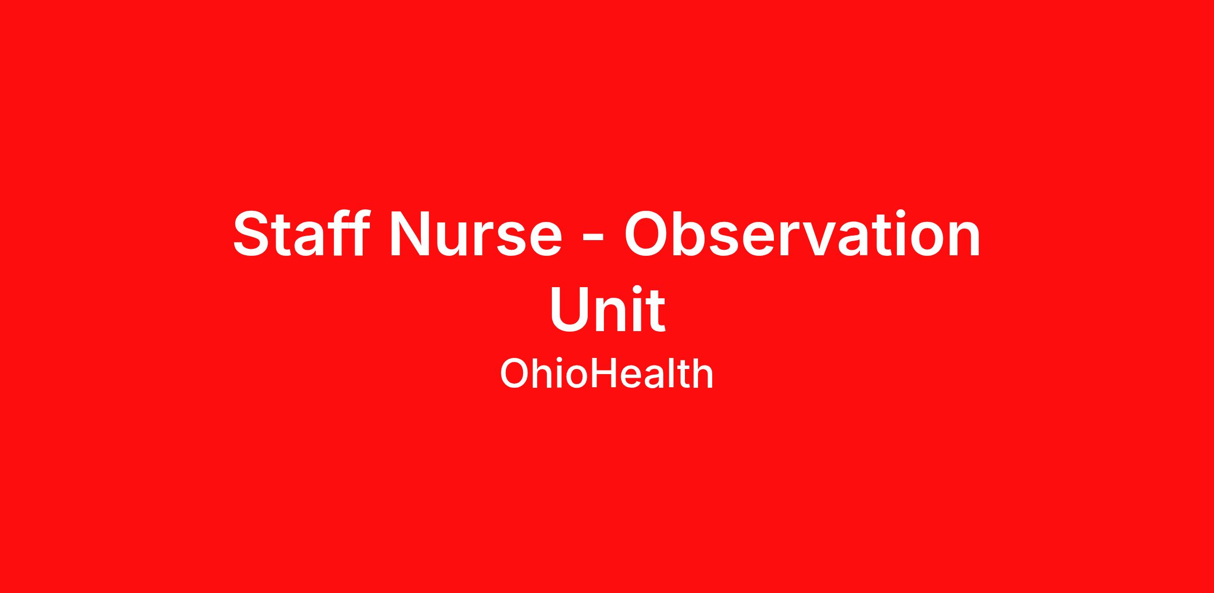 We are more than a health system. We are a belief system. We believe wellness and sickness are both part of a lifelong partnership, and that everyone could use an expert guide. We work hard, care deeply and reach further to help people uncover their own power to be healthy. We inspire hope. We learn, grow, and achieve more – in our careers and in our communities. Job Description Summary: Provides general nursing care to patients and families throughout the continuum of care in diverse, acute health care settings. (Department has scheduled staff to operate 24/7/365). The RN accountable for the practice of nursing as defined by the Ohio Board of Nursing. The RN delegates nursing tasks to licensed practical nurses (LPNs) and unlicensed assistive personnel (UAPs) using the criteria written in the Ohio Nurse Practice Act. According to department policies and nursing care standards, provides professional nursing care services to patients. Responsible for assessing, planning, implementing, and evaluating nursing care provided to assigned patients. Responsibilities And Duties: Assessment/Diagnosis - Performs initial, ongoing, and functional health status assessment as applicable to the population and or individual (30%). Outcomes Identification/Planning - Based on nursing diagnoses and collaborative problems, documents planned nursing interventions to achieve outcomes appropriate to patient needs (30%). Implementation/Evaluation - Evaluates and documents response to nursing interventions and achievement of outcomes at appropriately determined intervals; as part of a multidisciplinary team, revises plan of care based on evaluative data (20%). Leadership - Actively participates in process improvement activities to achieve targeted measures of clinical quality, customer satisfaction, and financial performance (10%). Operations (10%). As a High Reliability Organization (HRO), responsibilities require focus on safety, quality and efficiency in performing job duties. The job profile provides an overview of responsibilities and duties and is not intended to be an exhaustive list and is subject to change at any time. As a High Reliability Organization (HRO), responsibilities require focus on safety, quality and efficiency in performing job duties. The job profile provides an overview of responsibilities and duties and is not intended to be an exhaustive list and is subject to change at any time Minimum Qualifications: BLS - Basic Life Support - American Heart Association, RN - Registered Nurse - Ohio Board of Nursing Additional Job Description: MINIMUM QUALIFICATIONS Current Registered Nurse license from the State of Ohio and/or current Registered Nurse license in good standing with a multi-state compact state. BLS certification BSN required at 5 years of employment Work Shift: Night Scheduled Weekly Hours : 36 Department Observation Unit 1 Join us! if your passion is to work in a caring environment if you believe that learning is a life-long process if you strive for excellence and want to be among the best in the healthcare industry Equal Employment Opportunity OhioHealth is an equal opportunity employer and fully supports and maintains compliance with all state, federal, and local regulations. OhioHealth does not discriminate against associates or applicants because of race, color, genetic information, religion, sex, sexual orientation, gender identity or expression, age, ancestry, national origin, veteran status, military status, pregnancy, disability, marital status, familial status, or other characteristics protected by law. Equal employment is extended to all person in all aspects of the associate-employer relationship including recruitment, hiring, training, promotion, transfer, compensation, discipline, reduction in staff, termination, assignment of benefits, and any other term or condition of employment