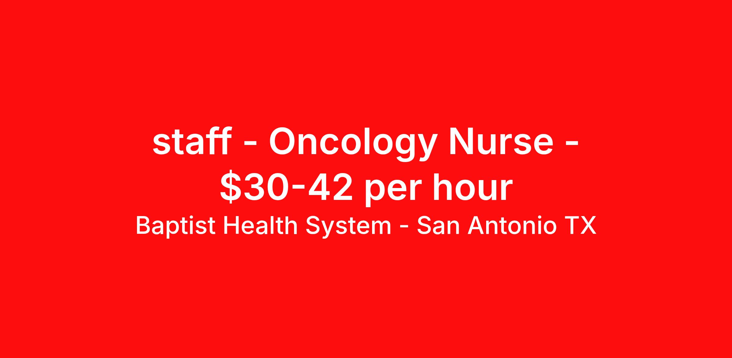 Baptist Health System - San Antonio TX is seeking a Registered Nurse (RN) Oncology for a nursing job in Harlingen, Texas. Job Description & Requirements Specialty: Oncology Discipline: RN Duration: Ongoing 36 hours per week Shift: 12 hours Employment Type: Staff Full Time. Days Job Summary This role provides direct clinical patient care. The role will assume responsibility for assessing, planning, implementing direct clinical care to assigned patients on a per shift basis, and unit level. The role is responsible for supervision of staff to which appropriate care is delegated. The role is accountable to support CNO to ensure high quality, safe and appropriate nursing care, competency of clinical staff, and appropriate resource management related to patient care. The RN provides high-quality, safe, cost-effective, total nursing care to all patients. The RN assumes responsibility for overall coordination and integration of patient care based on the nursing process. The RN directs care according to established standards of safety, risk management, QI, and Infection Control, with the goal being to discharge the patient with an optimum level of care provided. Assumes responsibility for coordination and planning of patient care within the prescribed medical regime. Administers all medications safely and in a timely manner per hospital policy. Performs and fulfills all HICS (hospital incident command system) responsibilities, assignments, tasks, and roles as directed and needed by the facility in times of emergency and/or disaster. Responsible for knowing the Hospital’s emergency codes, including the purpose and appropriate action for each, and adheres to the Hospital policies and procedures for each emergency code. Required: Graduate of an accredited school of nursing. Preferred: Bachelor's or Master's degree in Nursing Experience Preferred: Recent acute care experience. Certifications Required: Currently licensed, certified, or registered to practice profession as required by law, regulation in state of practice or policy; AHA BLS, and if applicable by corporate policy for unit of hire, AHA ACLS and/or PALS and/or NRP. LI-NR1 Baptist Health System - San Antonio Job ID 2603001945. Posted job title: Registered Nurse (RN) - Oncology Benefits Health Care FSA Dependent Care FSA Life insurance