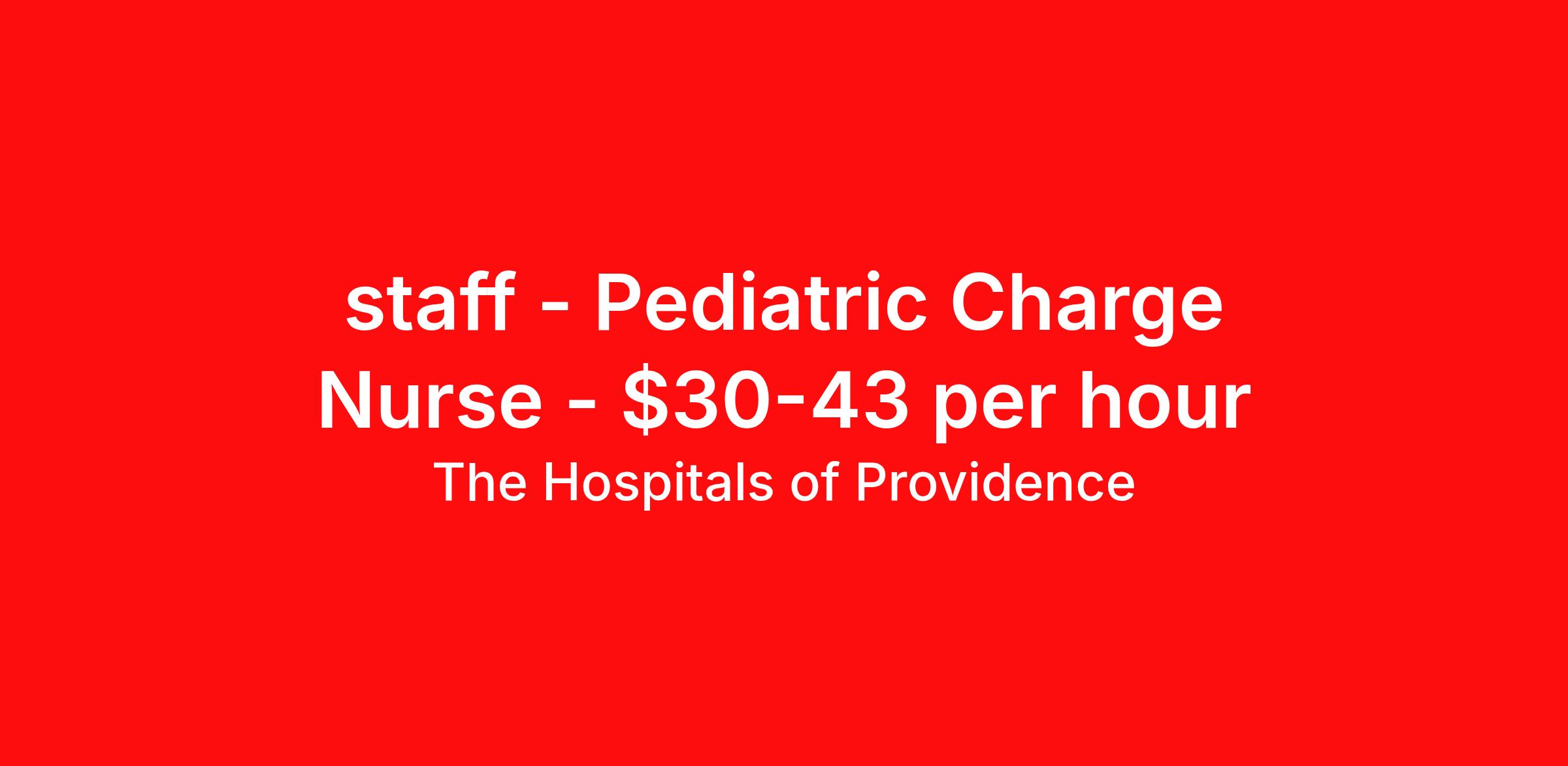 The Hospitals of Providence is seeking a Pediatrics Charge Nurse (RN) for a nursing job in El Paso, Texas. Job Description & Requirements Specialty: Pediatrics Discipline: RN Duration: Ongoing 36 hours per week Shift: 12 hours Employment Type: Staff This position may qualify for a sign-on bonus. Job Summary This role is responsible for providing guidance and support to staff, maintaining a safe environment, ensuring patient throughput, and directing nursing staff. The charge nurse is responsible for the smooth and efficient patient flow within the unit, delegates assignments and provides supervision for the support staff in accordance with their level of training and the patient’s acuity. The charge nurse works, in cooperation with medical providers to insure the quality of patient care. This role also provides direct clinical patient care. The role will assume responsibility for assessing, planning, implementing direct clinical care to assigned patients on a per shift basis, and unit level. The role is responsible for supervision of staff to which appropriate care is delegated. The Charge Nurse reports to the appropriate clinical leader with oversight by the CNO to ensure high quality, safe and appropriate nursing care, competency of clinical staff, and appropriate resource management related to patient care. The charge nurse oversees patient admissions, transfers and discharges, and mentors and trains new staff while providing support and guidance to all staff members. The charge nurse monitors medical charts and administers compassionate care and assistance to patients and families, liaises with doctors and administrators and communicates any protocol changes to staff. The charger nurse is also responsible for ensuring compliance with all health and safety regulations, and record sand maintains accurate reports. In addition, the RN charge nurse provides high-quality, safe, cost-effective, total nursing care to all patients assigned. The RN assumes responsibility for overall coordination and integration of patient care based on the nursing process. The RN directs care according to established standards of safety, risk management, QI, and Infection Control, with the goal being to discharge the patient with an optimum level of care provided. Assumes responsibility for coordination and planning of patient care within the prescribed medical regime. Administers all medications safely and in a timely manner per hospital policy. Performs and fulfills all HICS (hospital incident command system) responsibilities, assignments, tasks, and roles as directed and needed by the facility in times of emergency and/or disaster. Responsible for knowing the Hospital’s emergency codes, including the purpose and appropriate action for each, and adheres to the Hospital policies and procedures for each emergency code. Education Required: Graduate of an accredited school of nursing. Preferred: Bachelor's or master's degree in nursing. Experience Required: 1 year of RN experience. Certifications Required: Currently licensed, certified, or registered to practice profession as required by law, regulation in state of practice or policy; AHA BLS, and if applicable by corporate policy for unit of hire, AHA ACLS and/or PALS and/or NRP. LI-JP2 The Hospitals of Providence Job ID 2503031730. Posted job title: Charge Nurse (RN) - Pediatrics Full Time Days