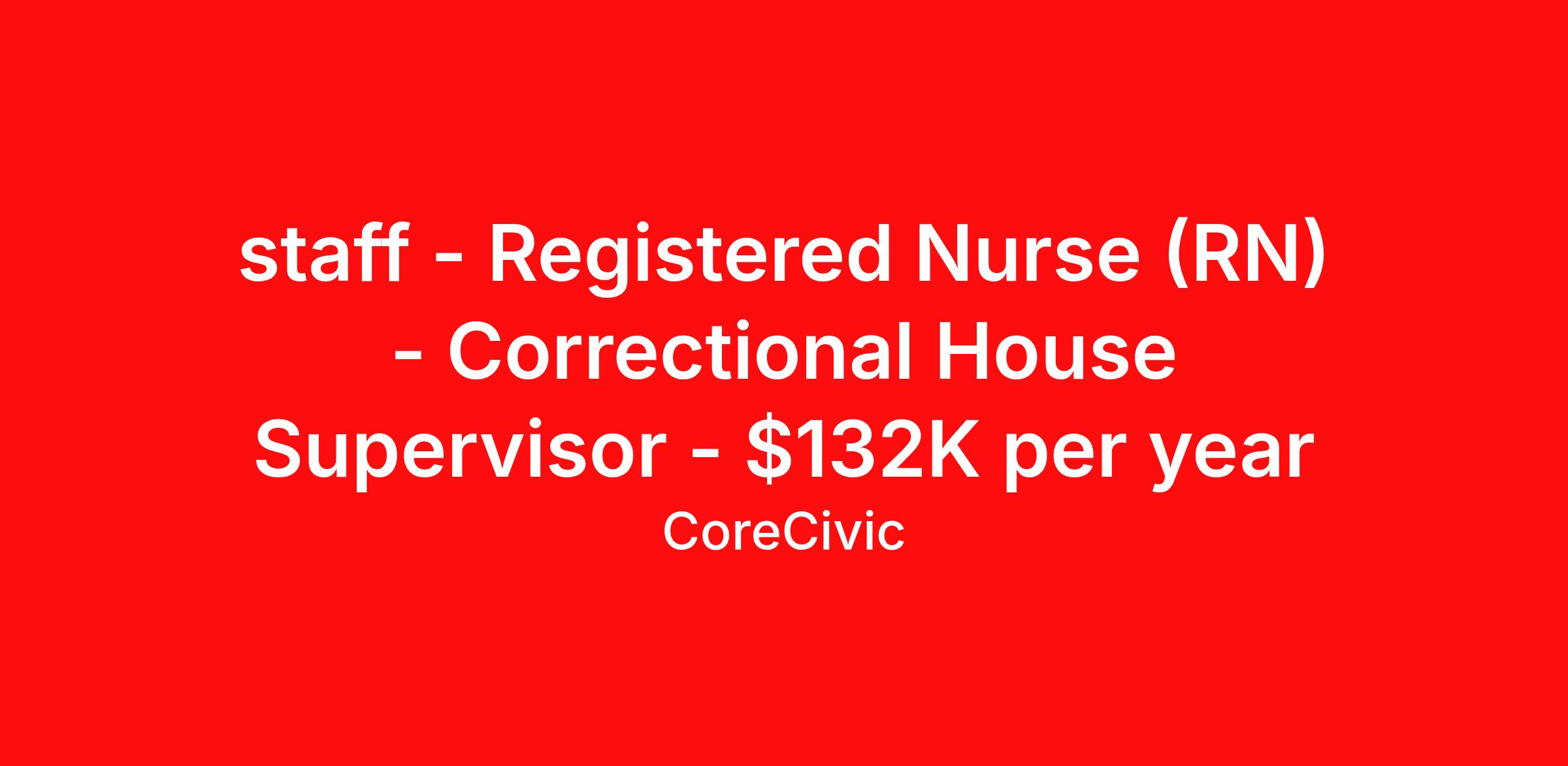 staff - Registered Nurse (RN) - Correctional House Supervisor - $132K per year