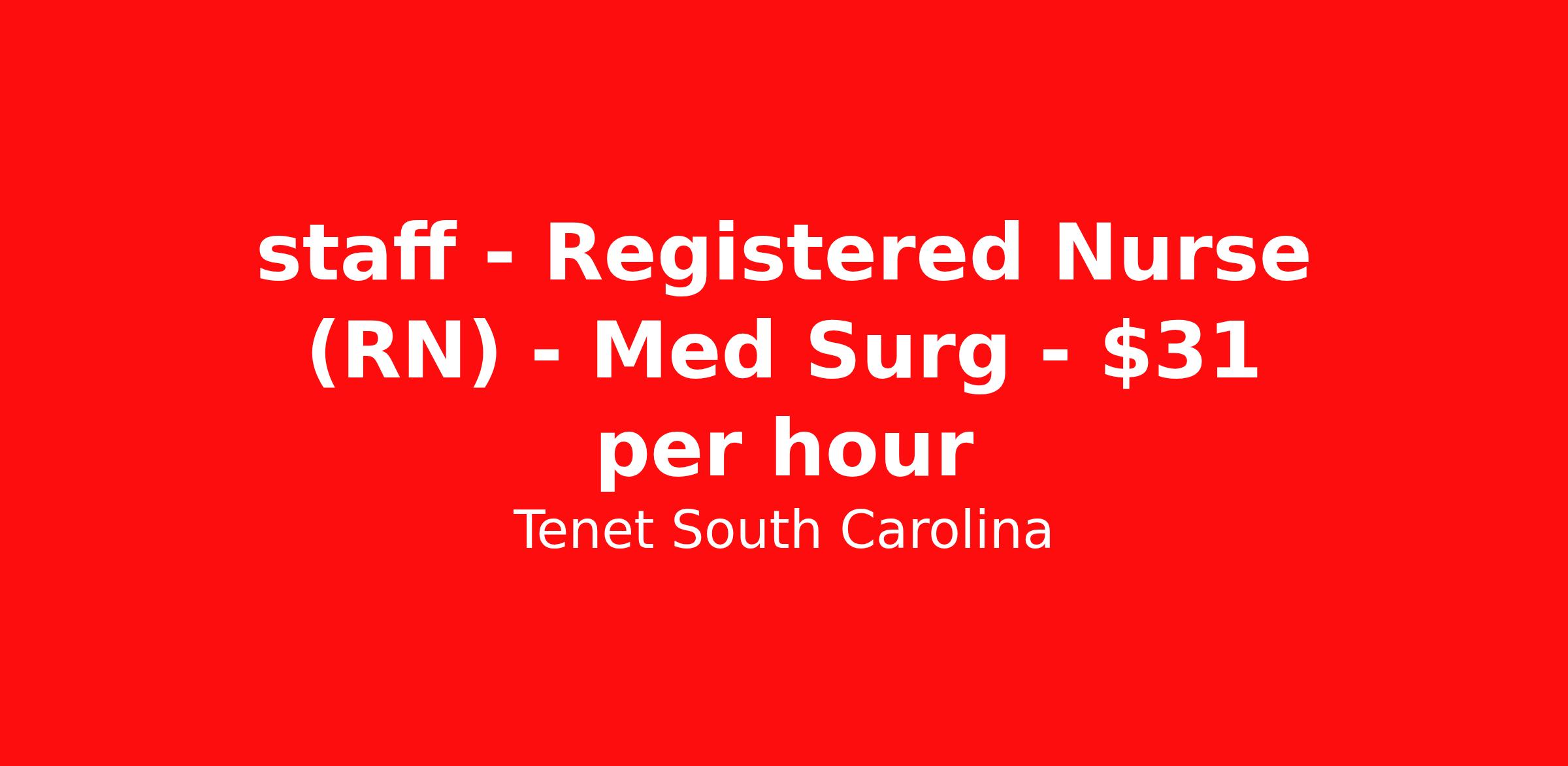 Tenet South Carolina is seeking a Registered Nurse (RN) Med Surg for a nursing job in Rock Hill, South Carolina. Job Description & Requirements Specialty: Med Surg Discipline: RN Duration: Ongoing 36 hours per week Shift: 12 hours Employment Type: Staff Up to $20,000 Sign-on Bonus Based on Eligibility Provide, promote and maintain quality patient care during diagnostic and therapeutic imaging procedures through education, standards of practice, professional growth, and collaboration with other multidisciplinary health care providers. Initiates and documents a written plan of care within specified timeframe Performs patient interventions completely and proficiently and demonstrates age specific competency for population of patients served. Provides appropriate treatment in emergency situations as they arise. Verifies, during hospitalization, orders for accuracy (including reconciliation of medications), appropriate scheduling of tests and/or procedures, pre-op data, and consent forms. Follows medication and IV Therapy policies including patient identification, understanding about medications, administering meds and recognizing/reporting interactions 100% of the time. Appropriately monitors first dose medication(s) for adverse reactions. Performs related duties as required. Required: Education: Associate’s degree in Nursing required. Experience: Each candidate’s previous clinical experience is reviewed to determine acceptable experience. Certifications/Registrations/Licenses: A valid Permanent Multi-State RN License from the state in which you reside is required. Should you hold a RN license from another Compact state, you are required to apply for and obtain a Multi-State RN License from the state in which you reside within 30 days. American Heart Association BLS CPR required, must be obtained within 7 days of hire. Basic Rhythms within orientation. Tenet South Carolina Job ID 2603001243. Posted job title: Registered Nurse (RN) - Med Surg Benefits Sign-On bonus