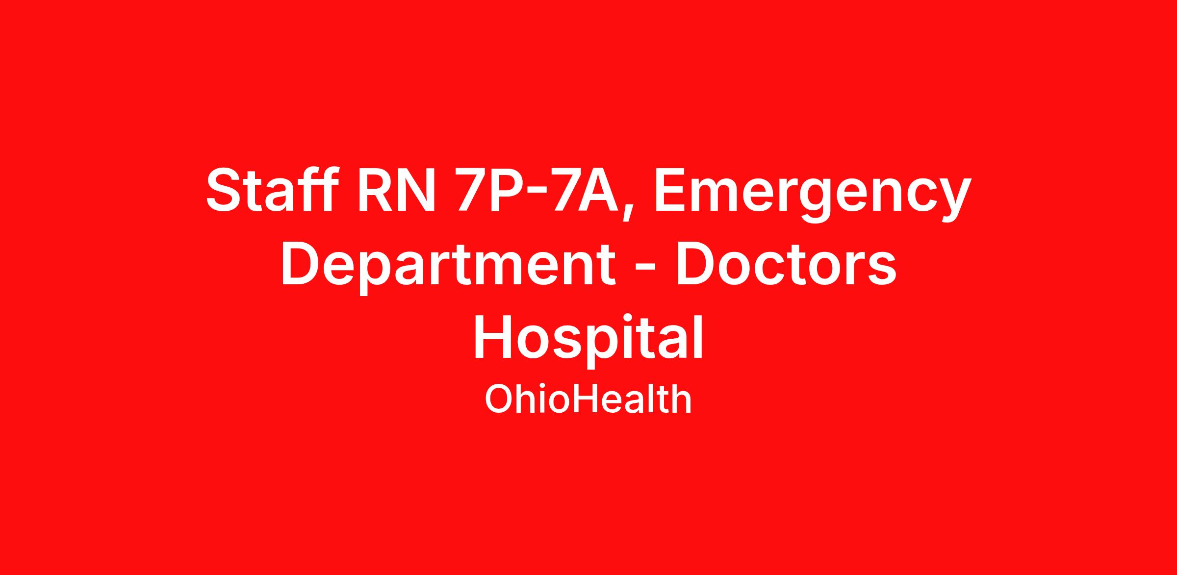 Staff RN 7P-7A, Emergency Department - Doctors Hospital