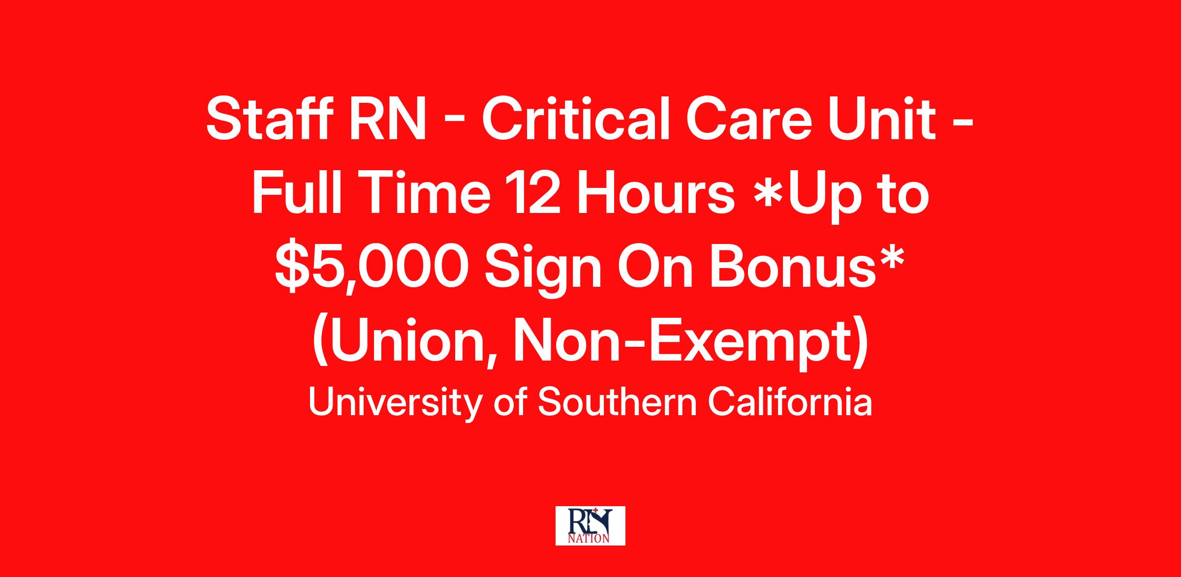 - A current RN licensure in the State of California is required.