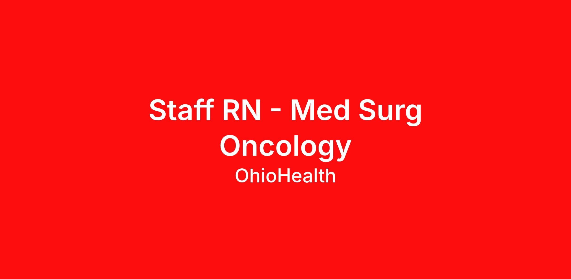 We are more than a health system. We are a belief system. We believe wellness and sickness are both part of a lifelong partnership, and that everyone could use an expert guide. We work hard, care deeply and reach further to help people uncover their own power to be healthy. We inspire hope. We learn, grow, and achieve more – in our careers and in our communities. Job Description Summary: Provides general nursing care to patients and families throughout the continuum of care in diverse, acute health care settings. (Department has scheduled staff to operate 24/7/365). The RN accountable for the practice of nursing as defined by the Ohio Board of Nursing. The RN delegates nursing tasks to licensed practical nurses (LPNs) and unlicensed assistive personnel (UAPs) using the criteria written in the Ohio Nurse Practice Act. According to department policies and nursing care standards, provides professional nursing care services to patients. Responsible for assessing, planning, implementing, and evaluating nursing care provided to assigned patients. Responsibilities And Duties: Assessment/Diagnosis - Performs initial, ongoing, and functional health status assessment as applicable to the population and or individual (30%). Outcomes Identification/Planning - Based on nursing diagnoses and collaborative problems, documents planned nursing interventions to achieve outcomes appropriate to patient needs (30%). Implementation/Evaluation - Evaluates and documents response to nursing interventions and achievement of outcomes at appropriately determined intervals; as part of a multidisciplinary team, revises plan of care based on evaluative data (20%). Leadership - Actively participates in process improvement activities to achieve targeted measures of clinical quality, customer satisfaction, and financial performance (10%). Operations (10%). As a High Reliability Organization (HRO), responsibilities require focus on safety, quality and efficiency in performing job duties. The job profile provides an overview of responsibilities and duties and is not intended to be an exhaustive list and is subject to change at any time. Minimum Qualifications: BLS - Basic Life Support - American Heart Association, RN - Registered Nurse - Ohio Board of Nursing Additional Job Description: MINIMUM QUALIFICATIONS Current Registered Nurse license from the State of Ohio and/or current Registered Nurse license in good standing with a multi-state compact state. BLS certification BSN required at 5 years of employment Work Shift: Day Scheduled Weekly Hours : 36 Department Med Surg Unit 1 Join us! if your passion is to work in a caring environment if you believe that learning is a life-long process if you strive for excellence and want to be among the best in the healthcare industry Equal Employment Opportunity OhioHealth is an equal opportunity employer and fully supports and maintains compliance with all state, federal, and local regulations. OhioHealth does not discriminate against associates or applicants because of race, color, genetic information, religion, sex, sexual orientation, gender identity or expression, age, ancestry, national origin, veteran status, military status, pregnancy, disability, marital status, familial status, or other characteristics protected by law. Equal employment is extended to all person in all aspects of the associate-employer relationship including recruitment, hiring, training, promotion, transfer, compensation, discipline, reduction in staff, termination, assignment of benefits, and any other term or condition of employment