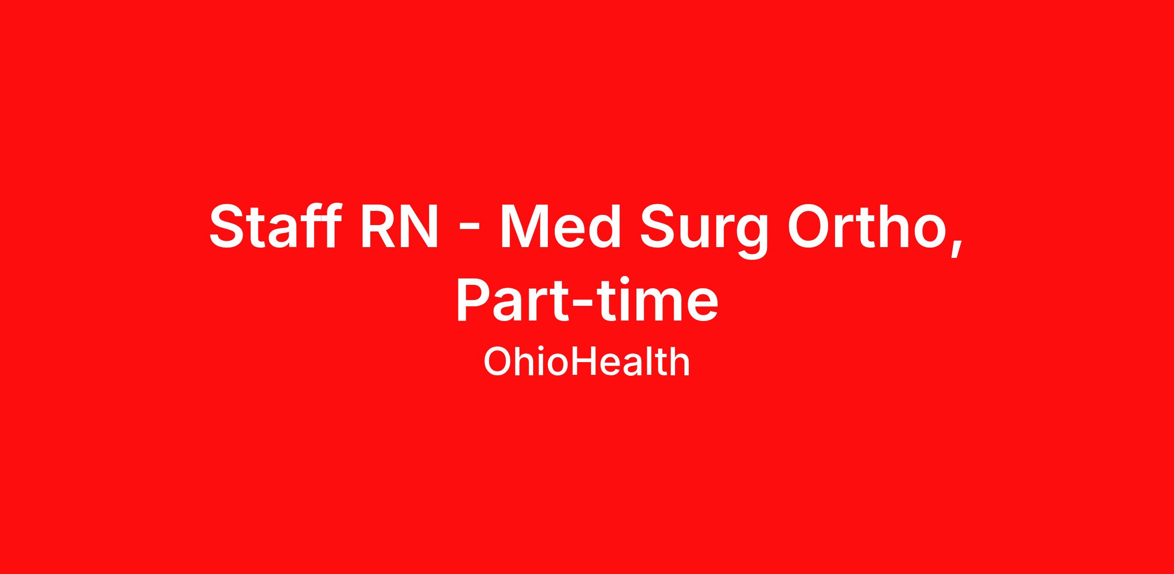 We are more than a health system. We are a belief system. We believe wellness and sickness are both part of a lifelong partnership, and that everyone could use an expert guide. We work hard, care deeply and reach further to help people uncover their own power to be healthy. We inspire hope. We learn, grow, and achieve more – in our careers and in our communities. Job Description Summary: Provides general nursing care to patients and families throughout the continuum of care in diverse, acute health care settings. (Department has scheduled staff to operate 24/7/365). The RN accountable for the practice of nursing as defined by the Ohio Board of Nursing. The RN delegates nursing tasks to licensed practical nurses (LPNs) and unlicensed assistive personnel (UAPs) using the criteria written in the Ohio Nurse Practice Act. According to department policies and nursing care standards, provides professional nursing care services to patients. Responsible for assessing, planning, implementing, and evaluating nursing care provided to assigned patients. Responsibilities And Duties: Assessment/Diagnosis - Performs initial, ongoing, and functional health status assessment as applicable to the population and or individual (30%). Outcomes Identification/Planning - Based on nursing diagnoses and collaborative problems, documents planned nursing interventions to achieve outcomes appropriate to patient needs (30%). Implementation/Evaluation - Evaluates and documents response to nursing interventions and achievement of outcomes at appropriately determined intervals; as part of a multidisciplinary team, revises plan of care based on evaluative data (20%). Leadership - Actively participates in process improvement activities to achieve targeted measures of clinical quality, customer satisfaction, and financial performance (10%). Operations (10%). As a High Reliability Organization (HRO), responsibilities require focus on safety, quality and efficiency in performing job duties. The job profile provides an overview of responsibilities and duties and is not intended to be an exhaustive list and is subject to change at any time. As a High Reliability Organization (HRO), responsibilities require focus on safety, quality and efficiency in performing job duties. The job profile provides an overview of responsibilities and duties and is not intended to be an exhaustive list and is subject to change at any time Minimum Qualifications: BLS - Basic Life Support - American Heart Association, RN - Registered Nurse - Ohio Board of Nursing Additional Job Description: MINIMUM QUALIFICATIONS Current Registered Nurse license from the State of Ohio and/or current Registered Nurse license in good standing with a multi-state compact state. BLS certification BSN required at 5 years of employment Work Shift: Day Scheduled Weekly Hours : 20 Department Med Surg Ortho Unit 1 Join us! if your passion is to work in a caring environment if you believe that learning is a life-long process if you strive for excellence and want to be among the best in the healthcare industry Equal Employment Opportunity OhioHealth is an equal opportunity employer and fully supports and maintains compliance with all state, federal, and local regulations. OhioHealth does not discriminate against associates or applicants because of race, color, genetic information, religion, sex, sexual orientation, gender identity or expression, age, ancestry, national origin, veteran status, military status, pregnancy, disability, marital status, familial status, or other characteristics protected by law. Equal employment is extended to all person in all aspects of the associate-employer relationship including recruitment, hiring, training, promotion, transfer, compensation, discipline, reduction in staff, termination, assignment of benefits, and any other term or condition of employment