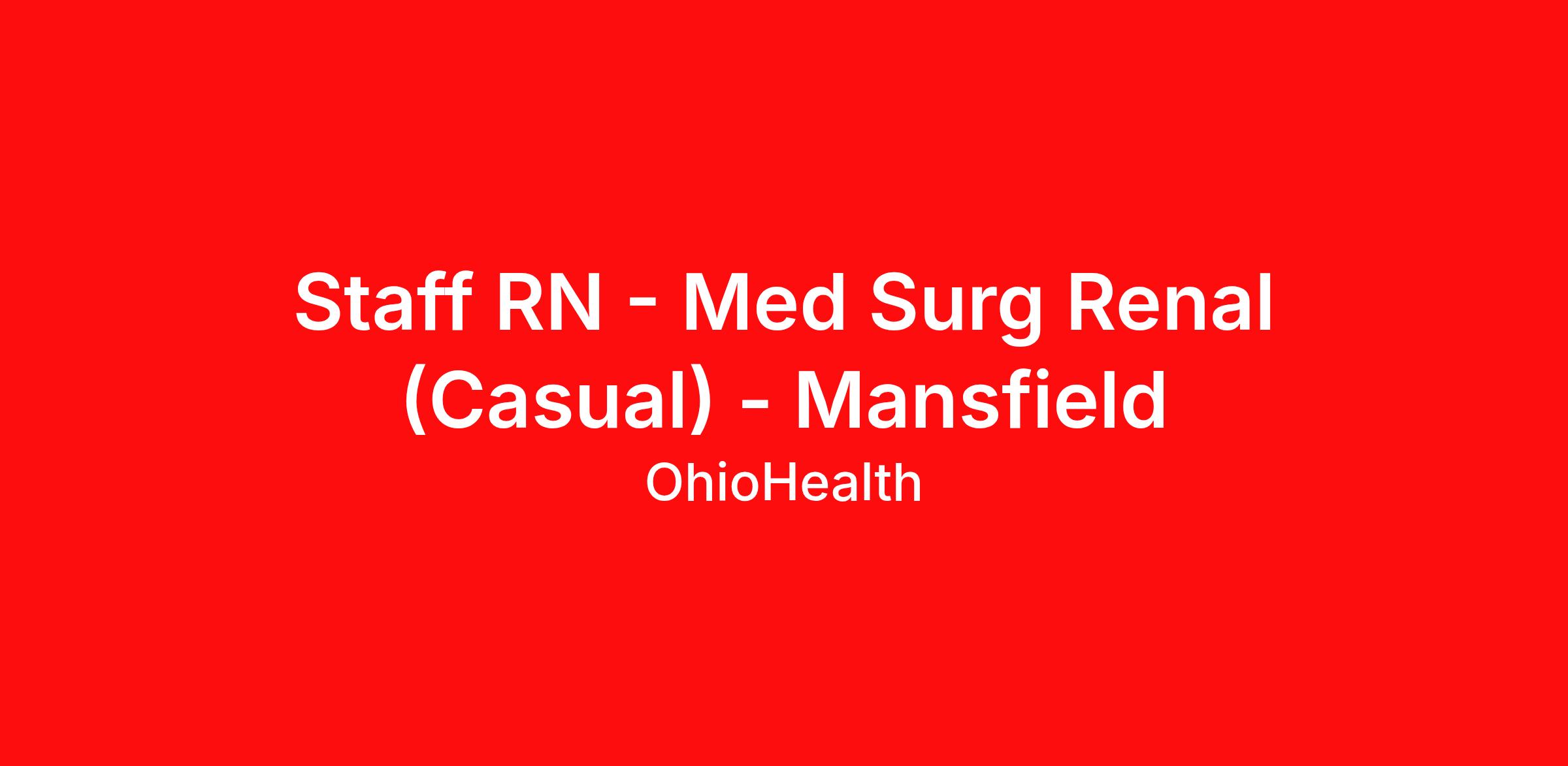 Staff RN - Med Surg Renal (Casual) - Mansfield