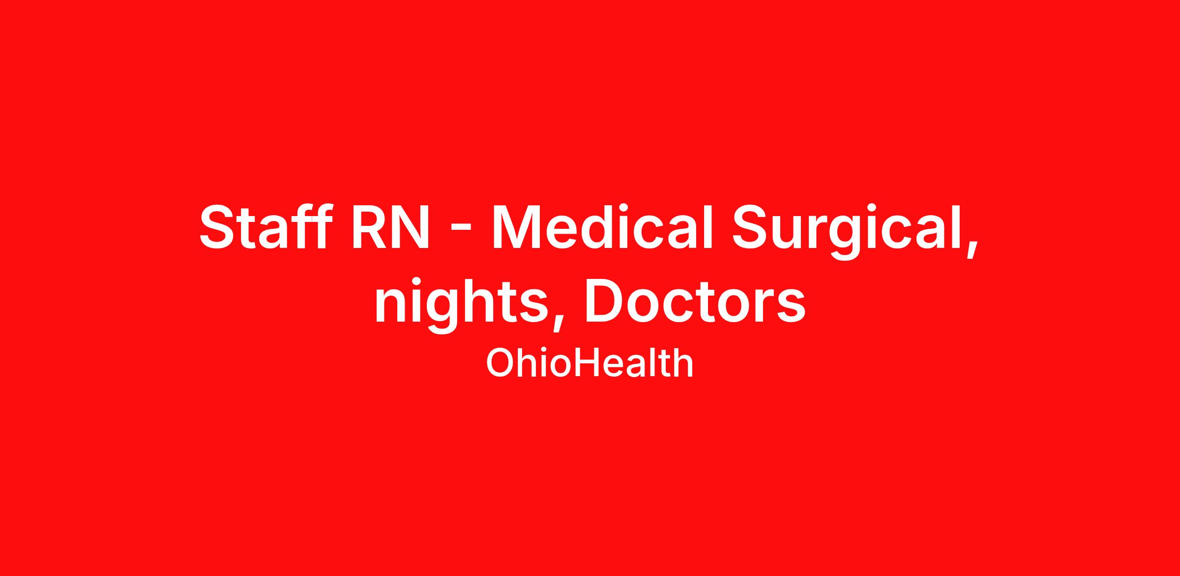 We are more than a health system. We are a belief system. We believe wellness and sickness are both part of a lifelong partnership, and that everyone could use an expert guide. We work hard, care deeply and reach further to help people uncover their own power to be healthy. We inspire hope. We learn, grow, and achieve more – in our careers and in our communities. Job Description Summary: This position is full time, night shift. Provides general nursing care to patients and families throughout the continuum of care in diverse, acute health care settings. (Department has scheduled staff to operate 24/7/365). The RN accountable for the practice of nursing as defined by the Ohio Board of Nursing. The RN delegates nursing tasks to licensed practical nurses (LPNs) and unlicensed assistive personnel (UAPs) using the criteria written in the Ohio Nurse Practice Act. According to department policies and nursing care standards, provides professional nursing care services to patients. Responsible for assessing, planning, implementing, and evaluating nursing care provided to assigned patients. Responsibilities And Duties: Assessment/Diagnosis - Performs initial, ongoing, and functional health status assessment as applicable to the population and or individual (30%). Outcomes Identification/Planning - Based on nursing diagnoses and collaborative problems, documents planned nursing interventions to achieve outcomes appropriate to patient needs (30%). Implementation/Evaluation - Evaluates and documents response to nursing interventions and achievement of outcomes at appropriately determined intervals; as part of a multidisciplinary team, revises plan of care based on evaluative data (20%). Leadership - Actively participates in process improvement activities to achieve targeted measures of clinical quality, customer satisfaction, and financial performance (10%). Operations (10%). As a High Reliability Organization (HRO), responsibilities require focus on safety, quality and efficiency in performing job duties. The job profile provides an overview of responsibilities and duties and is not intended to be an exhaustive list and is subject to change at any time. Minimum Qualifications: BLS - Basic Life Support - American Heart Association, RN - Registered Nurse - Ohio Board of Nursing Additional Job Description: MINIMUM QUALIFICATIONS Current Registered Nurse license from the State of Ohio and/or current Registered Nurse license in good standing with a multi-state compact state. BLS certification BSN required at 5 years of employment Work Shift: Night Scheduled Weekly Hours : 36 Department Surgical Unit 1 Join us! if your passion is to work in a caring environment if you believe that learning is a life-long process if you strive for excellence and want to be among the best in the healthcare industry Equal Employment Opportunity OhioHealth is an equal opportunity employer and fully supports and maintains compliance with all state, federal, and local regulations. OhioHealth does not discriminate against associates or applicants because of race, color, genetic information, religion, sex, sexual orientation, gender identity or expression, age, ancestry, national origin, veteran status, military status, pregnancy, disability, marital status, familial status, or other characteristics protected by law. Equal employment is extended to all person in all aspects of the associate-employer relationship including recruitment, hiring, training, promotion, transfer, compensation, discipline, reduction in staff, termination, assignment of benefits, and any other term or condition of employment