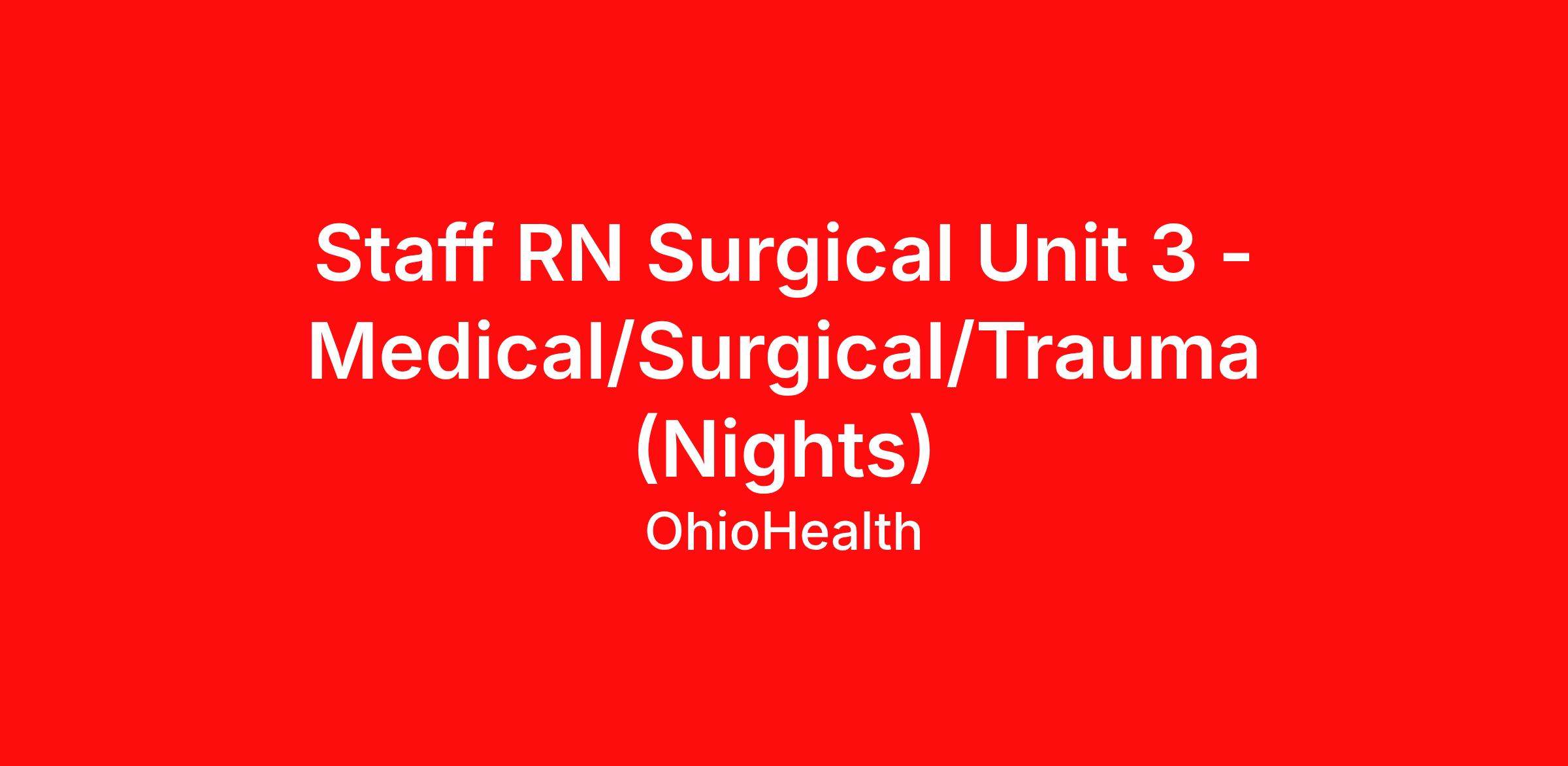 Staff RN Surgical Unit 3 - Medical/Surgical/Trauma (Nights)