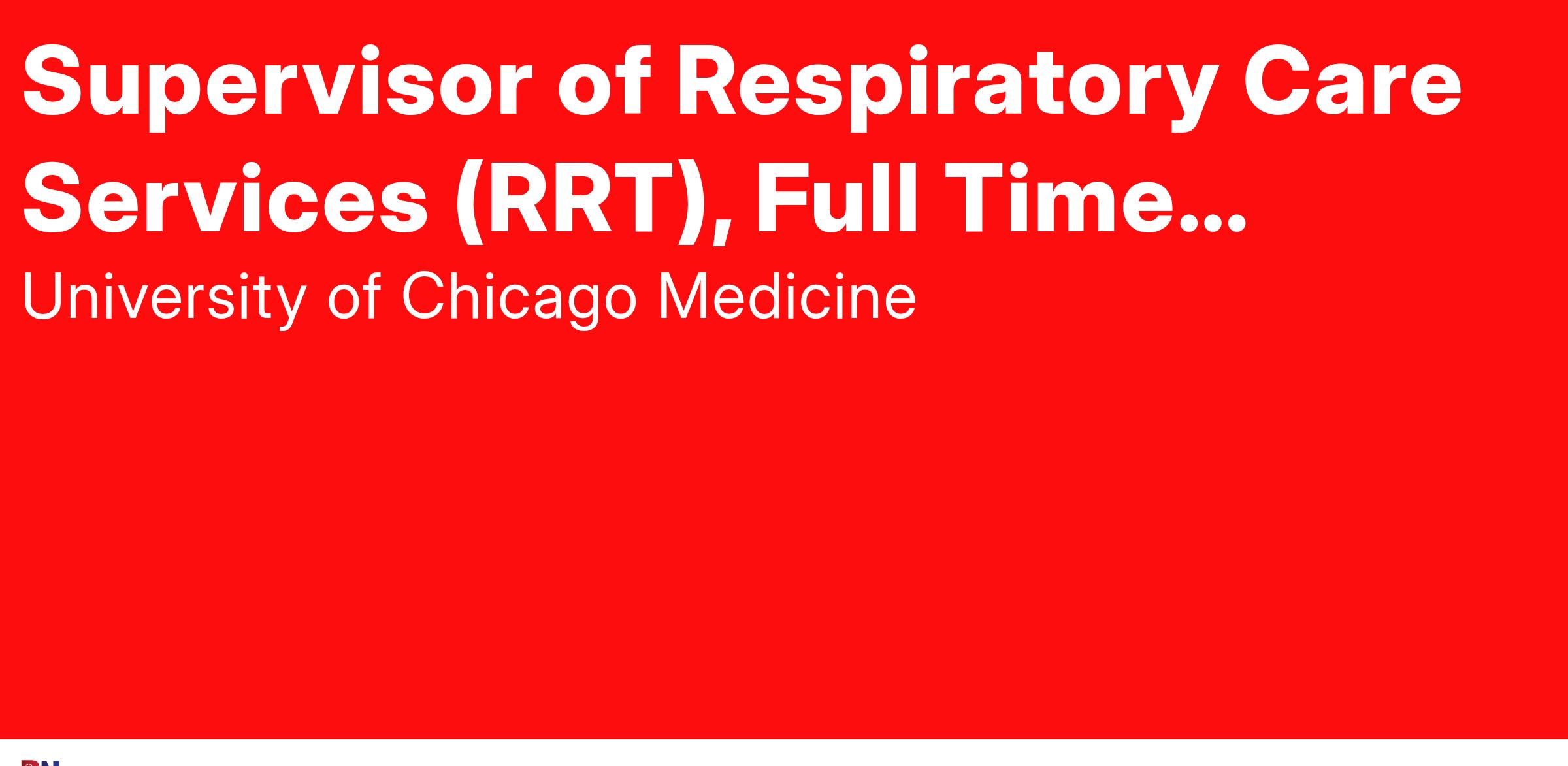 We're hiring a Supervisor (RRT) for the Respiratory Care Services department for a Full-Time, Afternoon shift with the University of Chicago Medicine at our main campus in Hyde Park, Chicago, IL. Note: This position will be supporting our Adult and Pediatric patient populations.