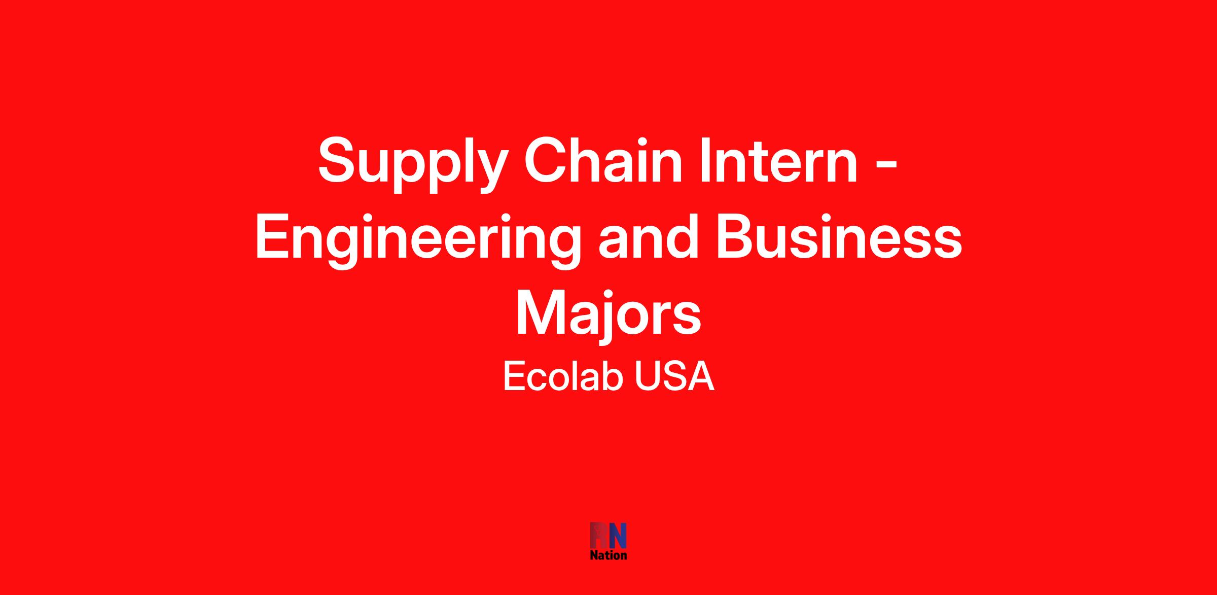 Ecolab is seeking Supply Chain Interns to join our summer 2026 internship program. Throughout the internship, you will develop essential Supply Chain skills by supporting activities needed to conduct, monitor and evaluate Ecolab’s Supply Chain growth in logistics, planning, procurement, quality, or manufacturing. You will have the opportunity to operate within our various plants or at an Ecolab corporate site.