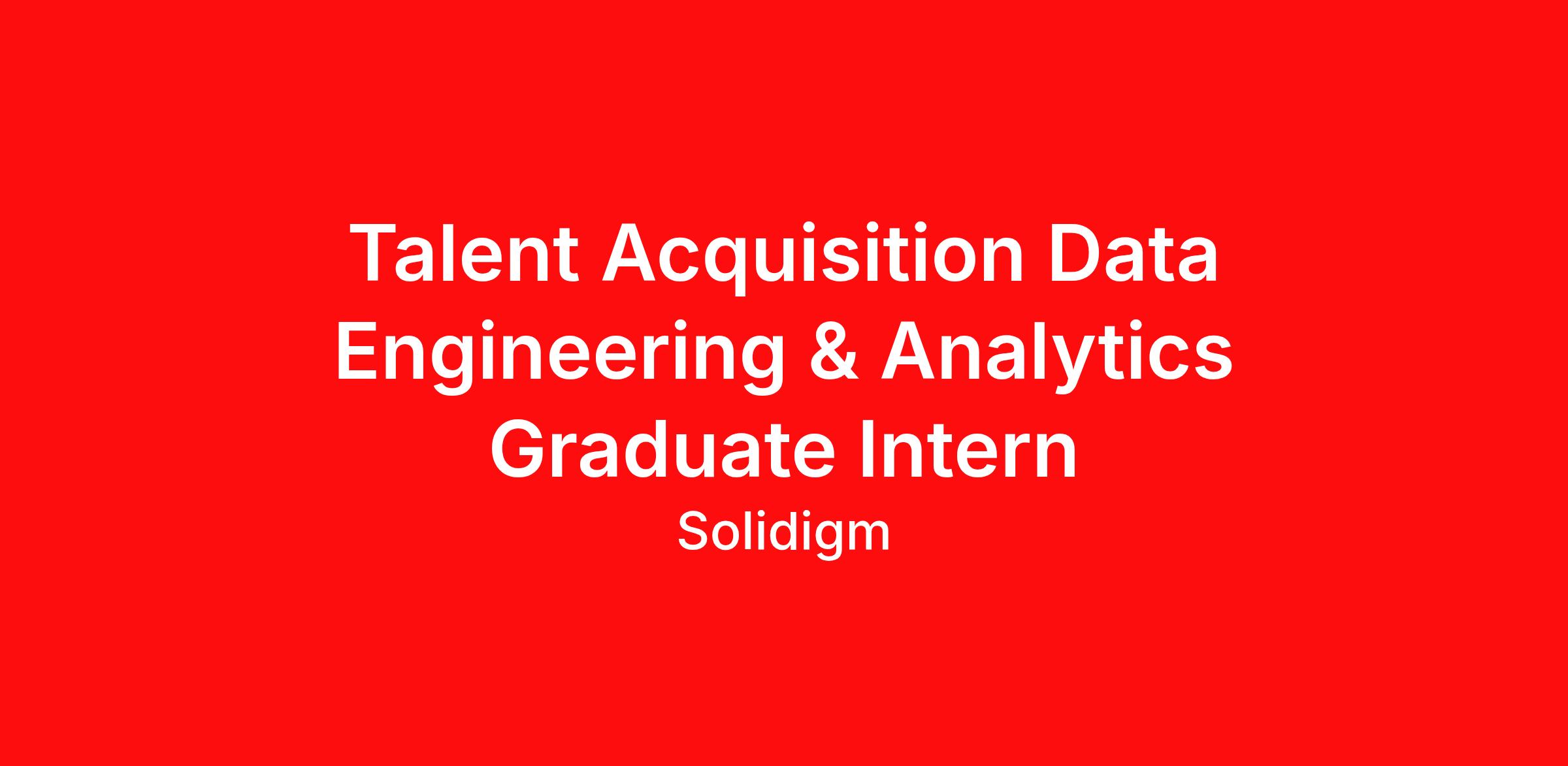 The Talent Acquisition Data Engineering & Analytics Intern will help build the foundation for Talent Acquisition reporting and analytics. This internship is designed for a technically strong graduate student interested in applying data engineering, analytics, and visualization techniques to real-world recruiting and workforce challenges.