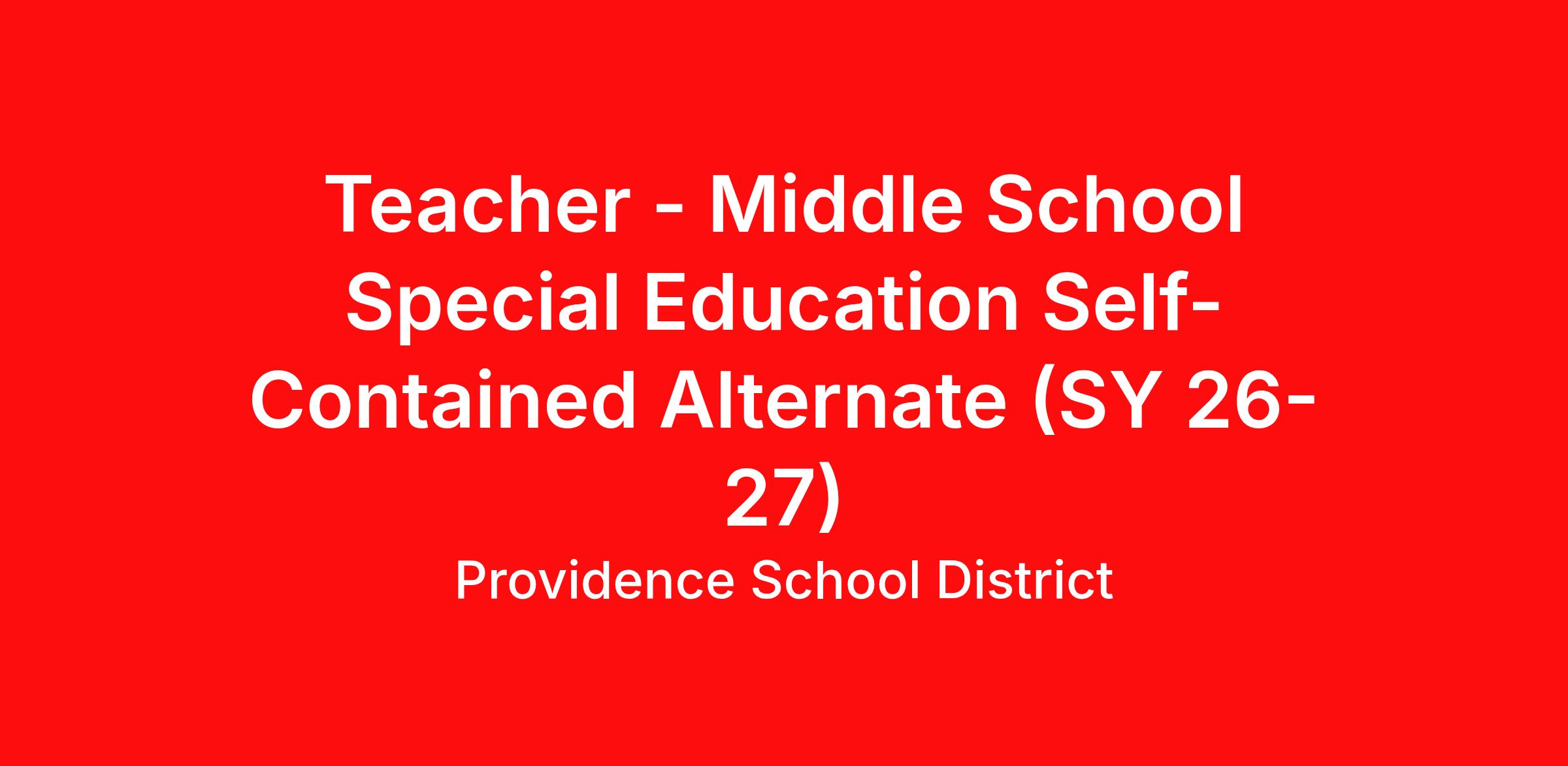 Providence Public Schools District (PPSD) seeks an exceptional MIDDLE SCHOOL SPECIAL EDUCATION (SPED) SELF-CONTAINED ALTERNATE (SCA) TEACHER who is highly qualified and skillful to join our community of teachers, students and stakeholders. This is an exciting opportunity for teachers who seek a challenging yet rewarding teaching experience.
