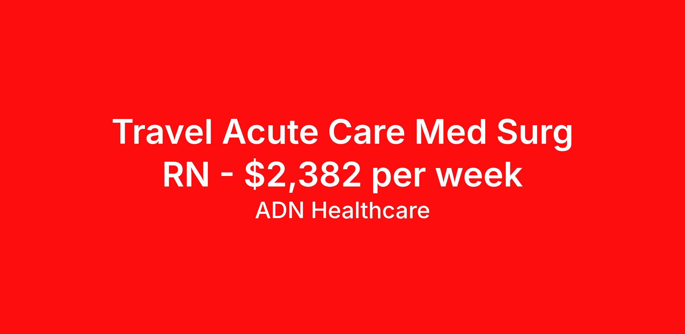 ADN Healthcare is seeking a travel nurse RN Acute Care Med Surg for a travel nursing job in Albany, Georgia. Job Description & Requirements Specialty: Acute Care Discipline: RN Start Date: 04/05/2026 Duration: 17 weeks 36 hours per week Shift: 12 hours, days Employment Type: Travel Our Client is currently seeking Med Surg for positions in Albany, Georgia for a 3x12 Days, 07:00:00-19:00:00, 12.00-3 shift. The ideal candidate will possess a current Georgia license. This is a RN position in the Acute Care 5 (MedSurg) type:Med Surg (Medical Surgical). You must have a Nursing License and at least 2 years of recent experience as a RN – Med Surg. Requirements • Current Resume • Nursing License per state • Current BLS and/or ACLS and/or Specialty Certifications • 2 current clinical references • Competitive pay rates • Health/Dental Benefit package • License reimbursement • Refer a friend and earn extra cash! ADN Healthcare Job ID 35877285. Pay package is based on 12 hour shifts and 36.0 hours per week (subject to confirmation) with tax-free stipend amount to be determined. Posted job title: RN:Med Surg,07:00:00-19:00:00 About ADN Healthcare ADN Healthcare has thousands of contract and direct hire positions available. We offer medical, dental, and vision coverage. Benefits Guaranteed Hours Continuing Education Company provided housing options Mileage reimbursement Referral bonus Medical benefits Dental benefits Vision benefits License and certification reimbursement Weekly pay Life insurance Health Care FSA