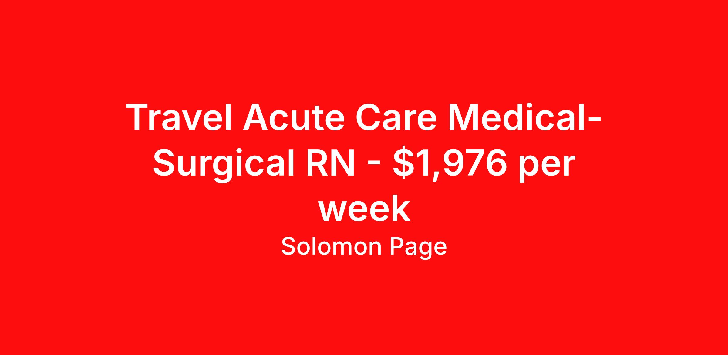 Travel Acute Care Medical-Surgical RN - $1,976 per week