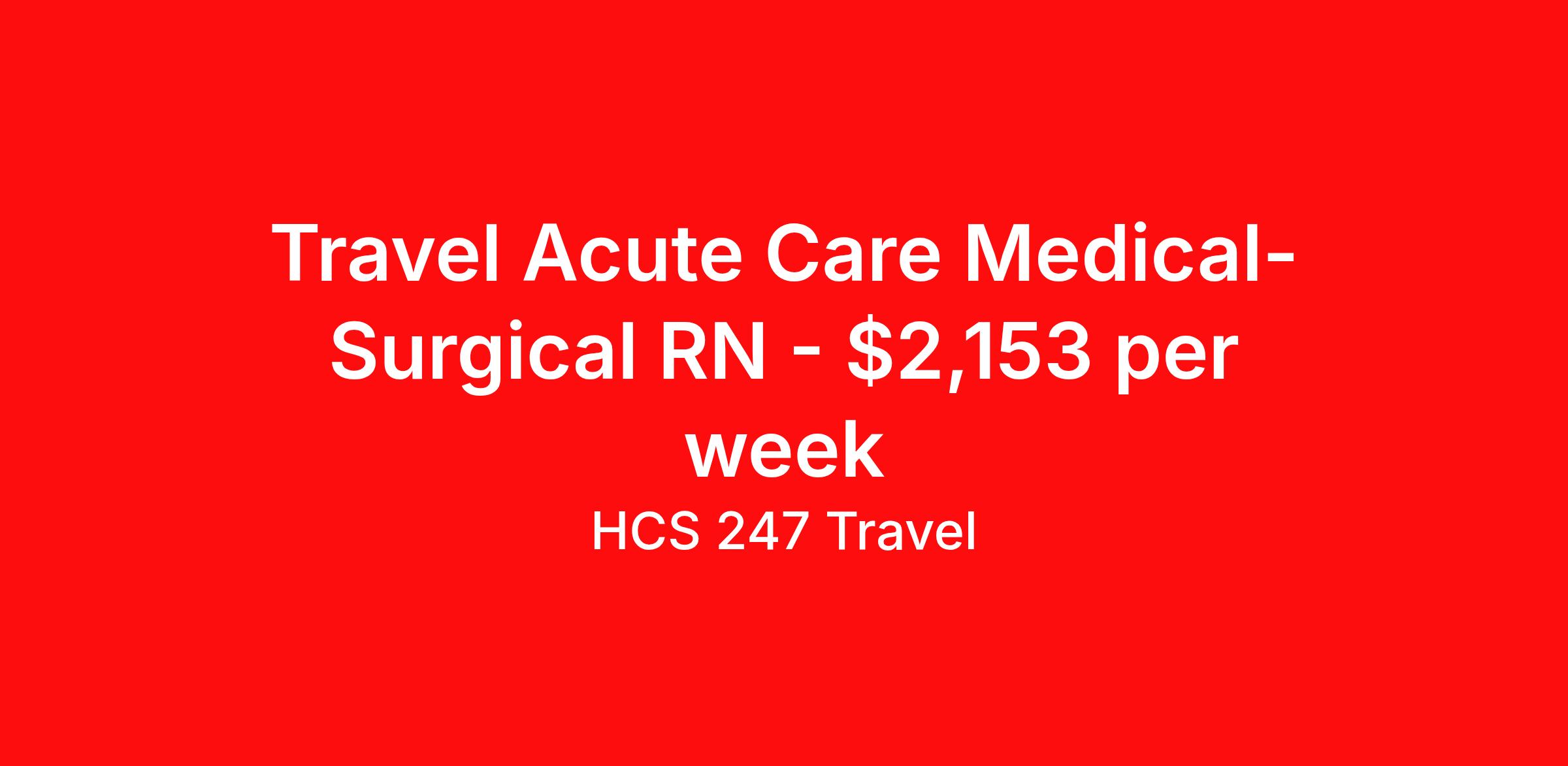 Travel Acute Care Medical-Surgical RN - $2,153 per week