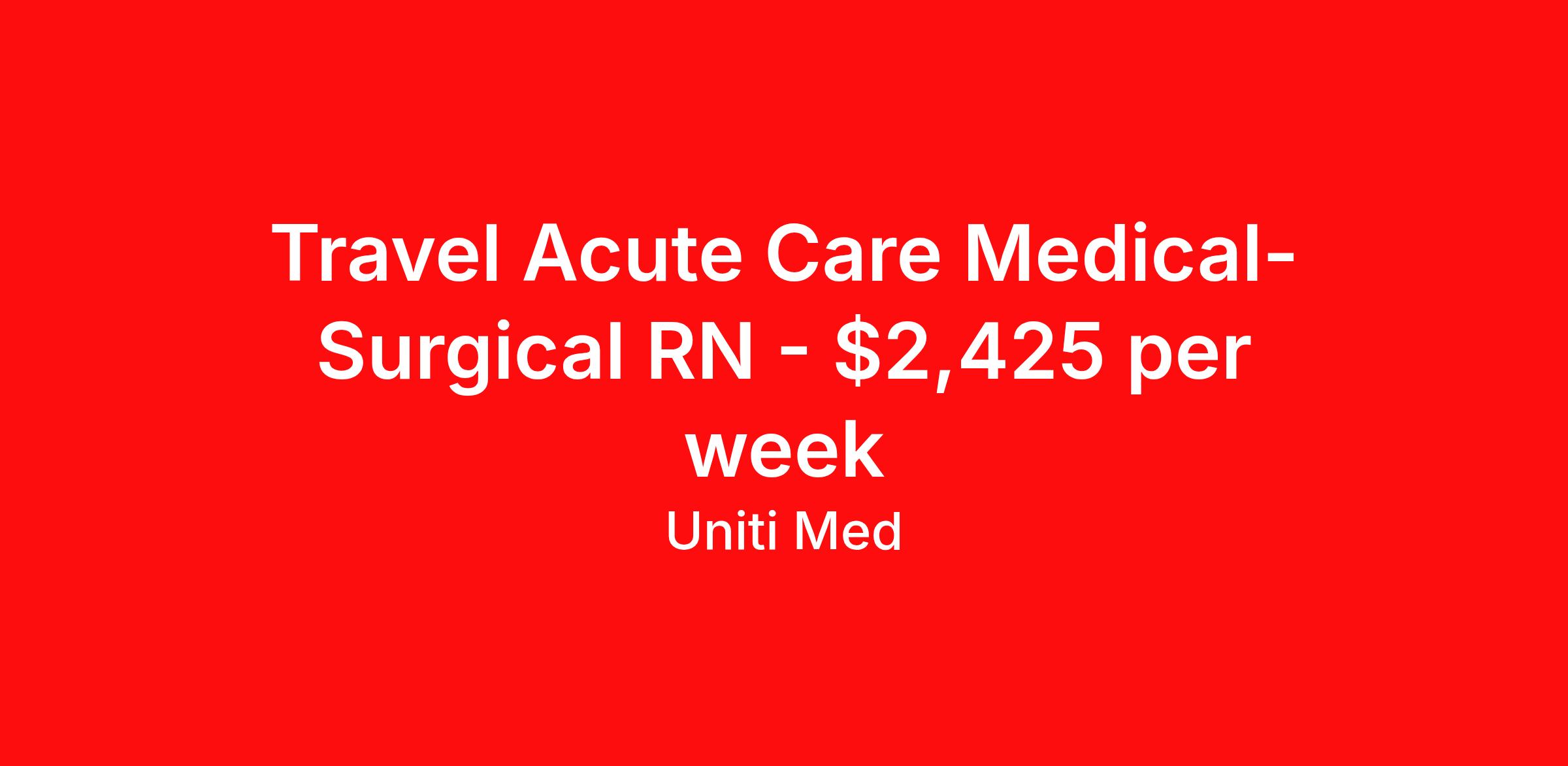 Travel Acute Care Medical-Surgical RN - $2,425 per week