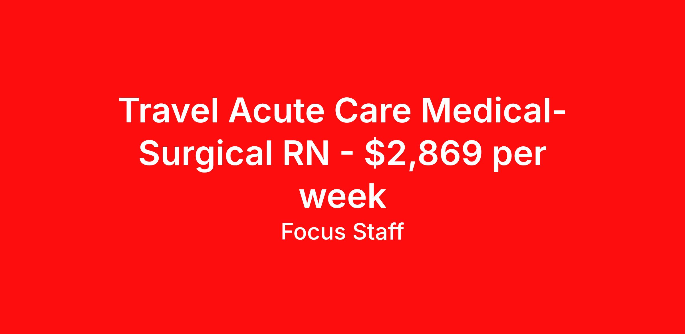 Travel Acute Care Medical-Surgical RN - $2,869 per week