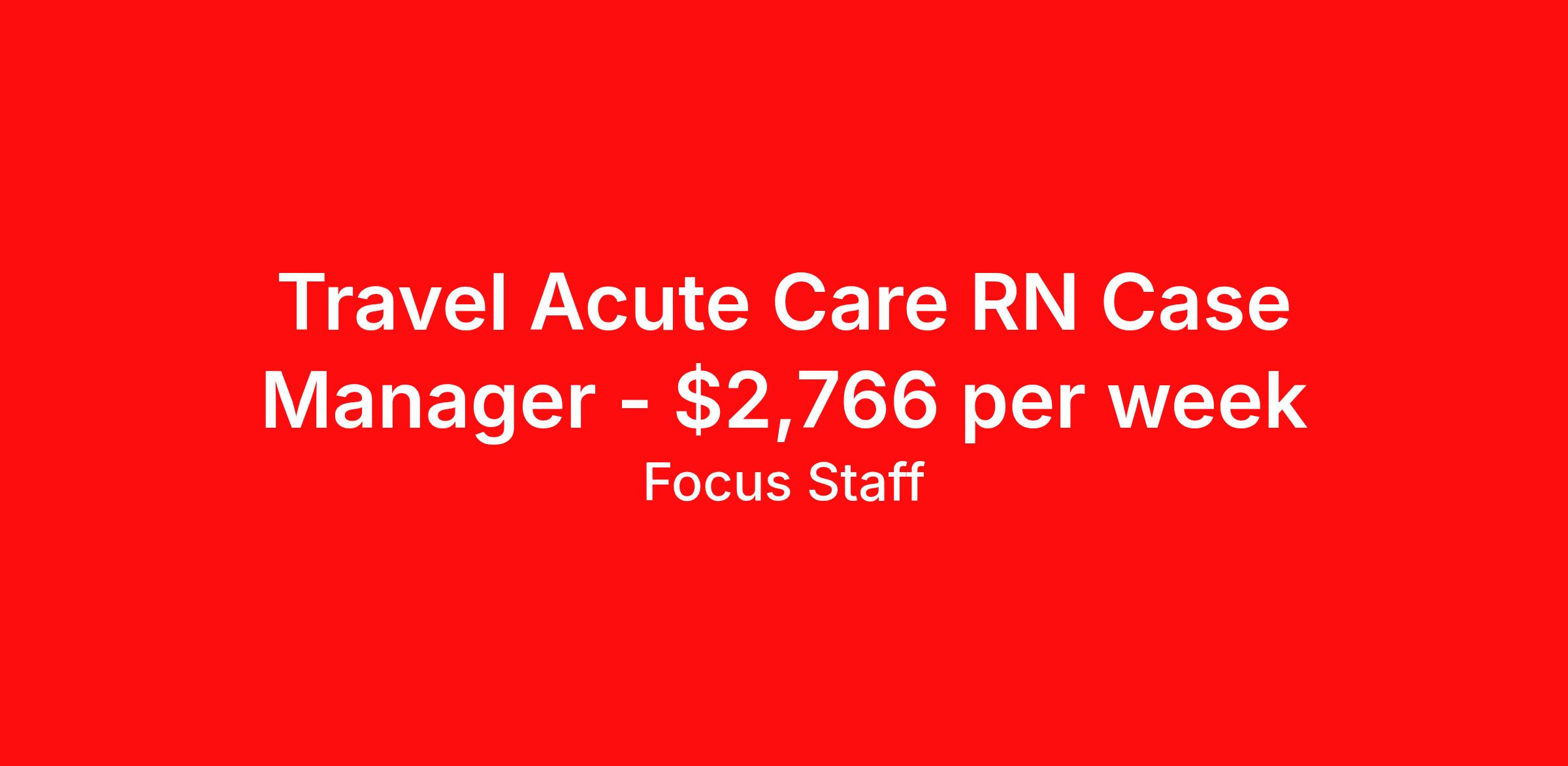 Travel Acute Care RN Case Manager - $2,766 per week