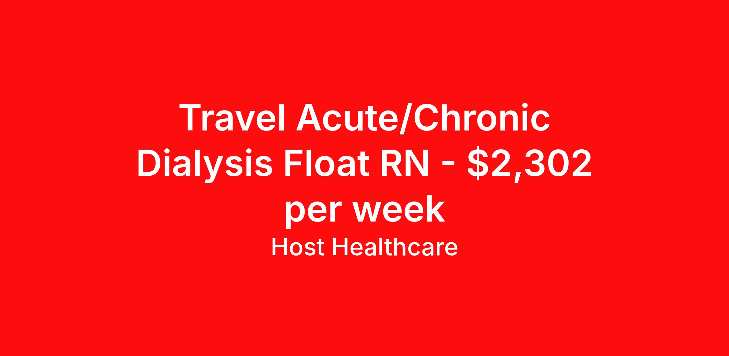 Host Healthcare is seeking a travel nurse RN Acute Care Med Surg for a travel nursing job in Rapid City, South Dakota. Job Description & Requirements Specialty: Acute Care Discipline: RN Start Date: 04/13/2026 Duration: 13 weeks 40 hours per week Shift: 12 hours, days Employment Type: Travel Host Healthcare Job ID a1fVX000002wE9VYAU. Pay package is based on 12 hour shifts and 40 hours per week (subject to confirmation) with tax-free stipend amount to be determined. Posted job title: RN - Acute Care Hospital About Host Healthcare At Host Healthcare, we provide a truly comfortable experience as you explore your travel nursing, therapy, or allied career. We make your travel healthcare journey easy by taking care of all the details, so you don’t have to. We are on a mission to help others live better and we do this by helping the healers of the world be as comfortable as possible. With access to tens of thousands of travel nursing, therapy, and allied jobs in all 50 states, our responsive and friendly recruiters find your dream position based on what’s important to you. During your assignment, get access to premium benefits, including Day 1 medical that continues up to 30 days between assignments, 401K matching, travel reimbursements, dedicated housing support, and more. We also offer 24/7 support from our team and access to our on-staff clinicians so you can feel comfortable and confident throughout your entire assignment. Travel comfortably with Host Healthcare. Benefits Referral bonus School loan reimbursement Vision benefits Wellness and fitness programs Company provided housing options License and certification reimbursement Life insurance Medical benefits Mileage reimbursement Pet insurance Discount program Employee assistance programs Guaranteed Hours Health savings account Holiday Pay 401k retirement plan Continuing Education Dental benefits