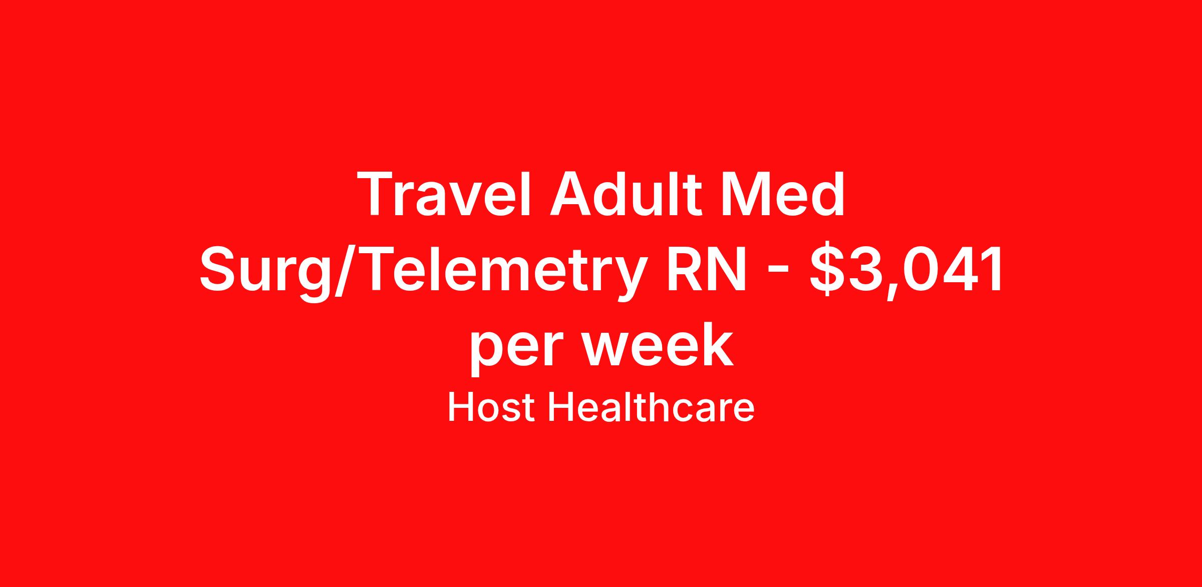 Host Healthcare is seeking a travel nurse RN Home Health Med Surg / Telemetry for a travel nursing job in New York, New York. Job Description & Requirements Specialty: Med Surg / Telemetry Discipline: RN Start Date: 04/06/2026 Duration: 13 weeks 38 hours per week Shift: 8 hours, days Employment Type: Travel Host Healthcare Job ID a1fVX000002zVnJYAU. Pay package is based on 8 hour shifts and 38 hours per week (subject to confirmation) with tax-free stipend amount to be determined. Posted job title: RN - Home Health About Host Healthcare At Host Healthcare, we provide a truly comfortable experience as you explore your travel nursing, therapy, or allied career. We make your travel healthcare journey easy by taking care of all the details, so you don’t have to. We are on a mission to help others live better and we do this by helping the healers of the world be as comfortable as possible. With access to tens of thousands of travel nursing, therapy, and allied jobs in all 50 states, our responsive and friendly recruiters find your dream position based on what’s important to you. During your assignment, get access to premium benefits, including Day 1 medical that continues up to 30 days between assignments, 401K matching, travel reimbursements, dedicated housing support, and more. We also offer 24/7 support from our team and access to our on-staff clinicians so you can feel comfortable and confident throughout your entire assignment. Travel comfortably with Host Healthcare. Benefits Referral bonus School loan reimbursement Vision benefits Wellness and fitness programs Company provided housing options License and certification reimbursement Life insurance Medical benefits Mileage reimbursement Pet insurance Discount program Employee assistance programs Guaranteed Hours Health savings account Holiday Pay 401k retirement plan Continuing Education Dental benefits