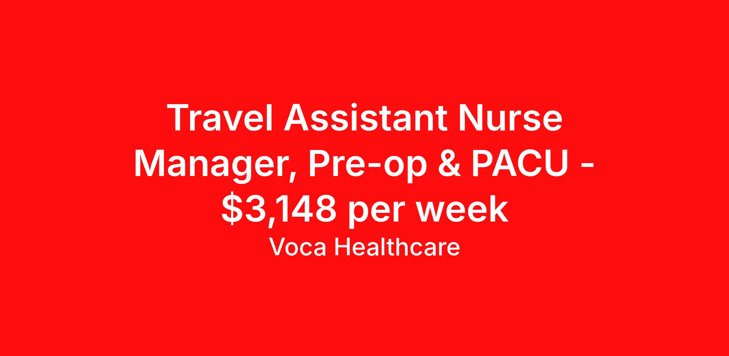 Travel Assistant Nurse Manager, Pre-op & PACU - $3,148 per week