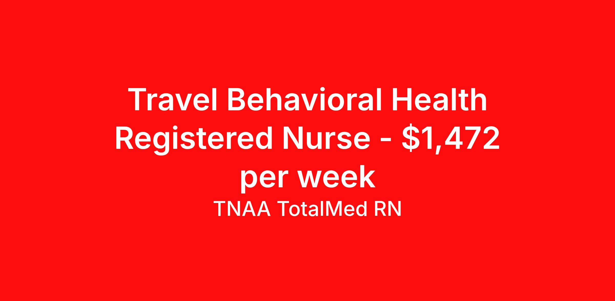 TNAA TotalMed RN is seeking a travel nurse RN Psychiatric for a travel nursing job in Harvey, Illinois. Job Description & Requirements Specialty: Psychiatric Discipline: RN Start Date: 04/13/2026 Duration: 13 weeks 36 hours per week Shift: 11 hours, nights Employment Type: Travel We're looking for Psychiatric Nurses for an immediate travel nurse opening in Harvey, IL. The right RN should have 1-2 years recent psychiatric nursing experience. Read below for more requirements. As a Psychiatric nurse, you'll work under general supervision to provide professional nursing care for those with emotional disturbances or mental illnesses in Behavioral Health and Recovery Services. The Psychiatric Nurse also collaborates with clinical and case management staff to coordinate care and assist in patient treatment planning. As a Psychiatric Travel Nurse, you should be prepared to perform the following tasks: Conduct intake assessments through interviews with patients and relatives to gather case history, and complete physical and mental health assessments Observe and report patient behavioral changes. Assist patients in understanding the nature of emotional disturbances and accepting the need for treatment. Document all patient information on medical charts and follow physician's written orders while maintaining patient confidentiality. Plan nursing care for patients by providing nursing diagnosis of the medical and emotional status of patients and recommending treatment options. Consult with psychiatrists and other behavioral health staff in designing appropriate treatment plans for patients. Administer and record reactions to psychotropic drugs and other medications, arranging further medical attention when necessary. Assist in maintaining a safe and secure environment for staff and patients. Test for pain vital signs and ensure appropriate pain treatment is administered. Maintain accurate records and documentation of patient treatments, immunizations and laboratory results according to standard medical recordkeeping. Perform administrative assignments such as filing, answering phones, typing, and completing electronic progress notes. Psychiatric Travel Nurses should be able to stand and walk for long periods of time, carry up to 20 pounds of weight, as well as bend, lean and stoop without difficulty. Moving or lifting of patients may require lifting of up to 50 pounds at times. Because of the unpredictable nature of psychiatric and emotional disturbances, Psychiatric RNs must possess excellent coping and stress management skills and be able to relate to people of all ages and backgrounds while maintaining proper patient - clinician boundaries. Requirements*: BLS, 1 Year * Additional certifications may be required before beginning an assignment. TotalMed Travel Job ID 1394202. Pay package is based on 11 hour shifts and 36 hours per week (subject to confirmation) with tax-free stipend amount to be determined. Posted job title: Psychiatric - Psych RN - Travel Nurse About TNAA TotalMed RN TotalMed is a Top Ten, travel nursing and healthcare staffing agency with the mission of igniting purpose in healthcare. The organization staffs nurses, therapists, pharmacists, and other clinicians of all specialties in all 50 states. They offer local and travel jobs and match caregivers with the right organization to assist both facilities and patients. As an organization, they focus on putting highly-skilled staff into facilities to ensure adequate staffing for a better patient experience. TotalMed specializes in recruiting and placing healthcare professionals in travel, PRN, and permanent positions across the country in Nursing and Allied Health. Throughout 2020, the organization filled roles at even the most short-staffed facilities during the most challenging time in healthcare. By matching the right travel healthcare professional with the right organization, TotalMed continues to offer a lifeline to facilities and their patients. Benefits Weekly pay Guaranteed Hours Continuing Education 401k retirement plan Sick pay Wellness and fitness programs Referral bonus Employee assistance programs Medical benefits Dental benefits Vision benefits Benefits start day 1