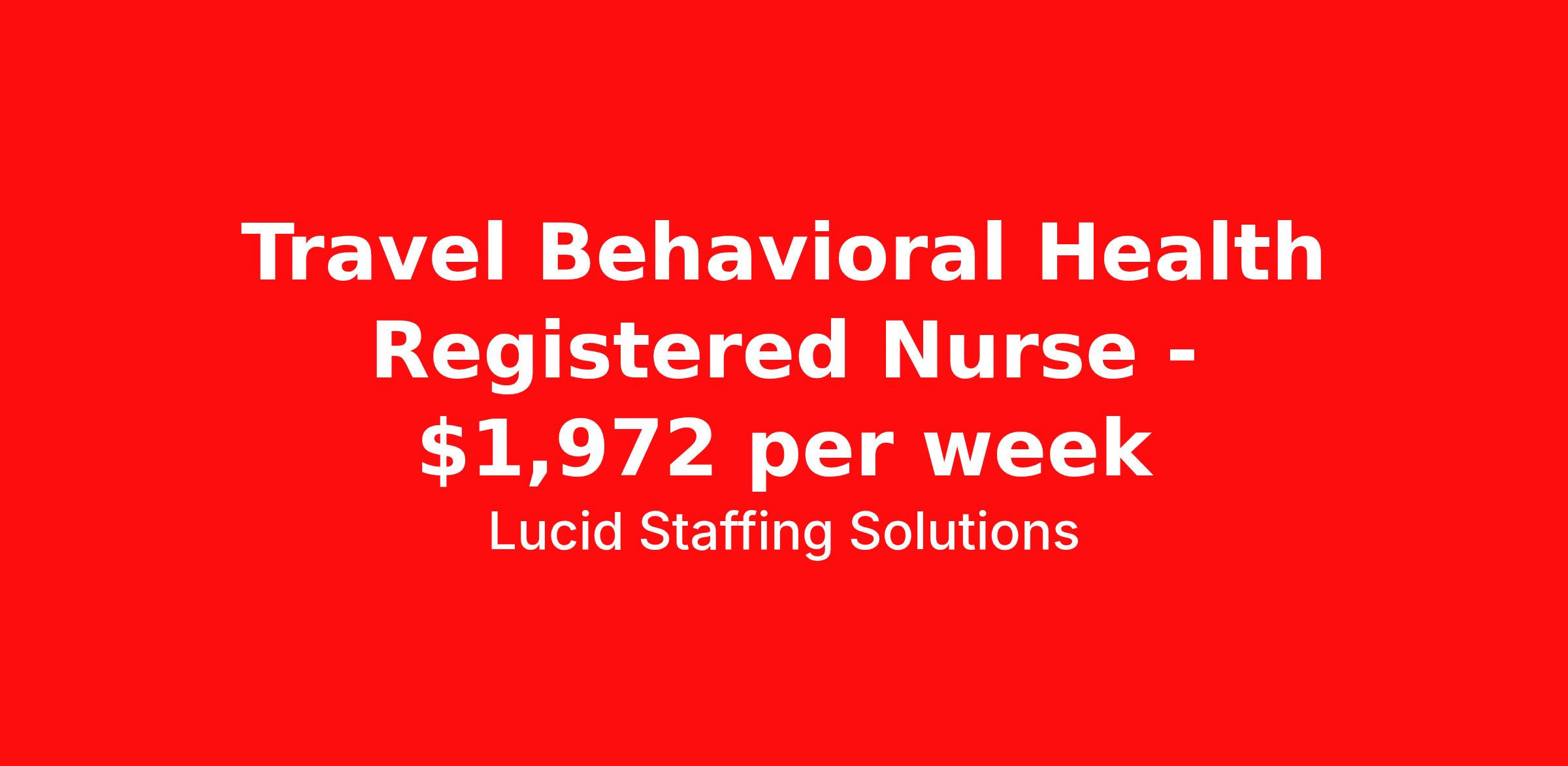 Lucid Staffing Solutions is seeking a travel nurse RN Behavioral Health for a travel nursing job in Holyoke, Massachusetts. Job Description & Requirements Specialty: Behavioral Health Discipline: RN Duration: 13 weeks 36 hours per week Shift: 12 hours, days Employment Type: Travel Job Description Position: Travel Registered Nurse (RN) with experience in Psych/Behavioral Health Location: Holyoke, Massachusetts Shift: 12hr Day Weekly Gross: $1972.03 Lucid Staffing Solutions was created by former healthcare workers who lived the short staffing, the chaotic workflows, and the nonstop pressure that comes with patient care. We built an agency powered by real clinical experience, kept simple and supportive, so you never have to guess whether the people guiding you actually know what they’re talking about. Minimum Requirements: Active license as a Registered Nurse (RN) Licensed in Massachusetts (If applicable) or compact eligible Two years of recent Psych/Behavioral Health experience Active BLS Why Lucid Works for Travelers Paid Weekly: Stipends pushed to GSA limits whenever possible $500 Travel Reimbursement: Paid at the start of each assignment Clinician-Led Team: Recruiters and Account Managers with real clinical experience In-House Compliance: fast updates, real communication, and none of the delays that come with outsourced vendors. Health Coverage Options: Multiple medical plans plus dental, vision, and workers compensation 401(k) Match: 4 percent match after 6 months License & Certification Reimbursement: We help cover the cost of staying compliant Liability Insurance: Included automatically Referral Bonuses: $500 per referral, $750 after five referrals Ready to start your journey? Apply today to connect with a Clinician-Recruiter! Lucid Staffing Solutions Job ID 37122. Pay package is based on 12 hour shifts and 36 hours per week (subject to confirmation) with tax-free stipend amount to be determined. Posted job title: Psych/Behavioral Health About Lucid Staffing Solutions Clinician Owned & Operated At Lucid Staffing Solutions, we do things differently—because we’ve been in your shoes. Founded by actual healthcare professionals, Lucid was built to fix the issues we experienced as travelers. We know what makes a great assignment: competitive pay, seamless onboarding, honest recruiters, and most importantly—working with a team that truly sees and supports you. Our entire team is made up of former clinicians who understand the demands of the job and what travelers truly need to succeed. We offer some of the highest paying allied health and nursing contracts across the country, along with some amazing benefits & perks. Whether you're chasing freedom, flexible schedules, bigger paychecks, or your next adventure, Lucid helps you get there—with real support, real respect , and real healthcare experts. Benefits Dental benefits Medical benefits Vision benefits