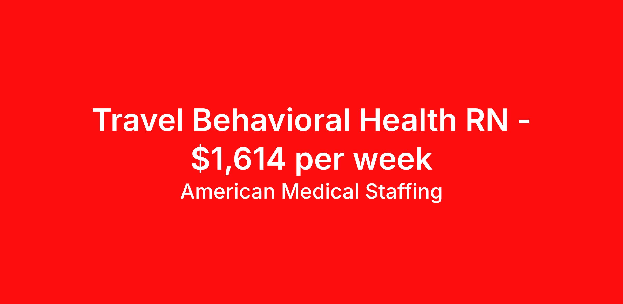 American Medical Staffing is seeking a travel nurse RN Psychiatric for a travel nursing job in Cleveland, Ohio. Job Description & Requirements Specialty: Psychiatric Discipline: RN Start Date: 03/30/2026 Duration: 13 weeks 36 hours per week Shift: 12 hours, days Employment Type: Travel We’re living in the new normal. Lives and careers look different today. So why shouldn’t you have a role that delivers excitement, fewer restrictions, and brings you closer to loved ones? At American Medical Staffing (AMS), we believe in supporting the pioneers who embody the sense of adventure each new placement brings and we’re looking for a RN: Psych for our Hospital contract assignment. Job Title : RN: Psych Location : Cleveland, Ohio Pay Range : Competitive, Negotiable, with Weekly Pay Schedule : 12-Hour Days, 07:00:00-19:00:00, 12.00-3 Contract Length : 13 Weeks Requirements : · 2 years of experience as a RN · Qualified applicants MUST have at least 2 years of experience in the Psych · Valid RN license · Be willing to obtain Ohio licensure Why Choose American Medical Staffing? · Day-One Benefits : Medical, dental, and vision plans with no waiting period. · Wellness PTO : Build 1 or 2 weeks of paid time off into your contract. · Hotel Discounts : Save up to 60% on hotel bookings with access to 700,000 discounted properties. · Loyalty Program : Earn financial incentives automatically based on hours worked and assignment type. · Referral Program : $500 for you and $500 for each referral after 450 hours—no limits. · Working Advantage : Access exclusive discounts on retail, entertainment, and travel. · Scrub Discount : 20% off all scrubs through our customized AMS store. · Retirement Plans : 401(k) options to help you plan for the future. · Compliance & Credentialing Support : Let us handle the logistics so you can focus on patient care. Responsibilities · Deliver specialized care to patients across a variety of acute and subacute units. · Work closely with a multidisciplinary team of healthcare professionals to provide comprehensive and compassionate care. · Monitor patient conditions, administer treatments and document outcomes. · Advocate for the best possible patient experience while supporting recovery, safety, and continuity of care. Apply now to take the next step in your journey. American Medical Staffing is an Equal Employment Opportunity Employer and does not discriminate on the basis of race, color, religion, sex, national origin, sexual orientation, gender identity, disability, age, or any other non-merit factor. American Medical Staffing Job ID 109414. Pay package is based on 12 hour shifts and 36.0 hours per week (subject to confirmation) with tax-free stipend amount to be determined. Posted job title: RN:Psych,07:00:00-19:00:00 About American Medical Staffing American Medical Staffing is a staffing agency headquartered in Baltimore, MD. Our goal is to CREATE an extraordinary experience for our health care professionals. Our roots are nurse owned and operated so we know what clinicians want - lots of options, a smooth and informed placement process, competitive and accurate pay, great customer service and responsiveness to requests, and advocacy when there is an issue. When AMS was founded in 2001, we started our company with a mission to be a better agency than our competitors. We have always put a heavy emphasis into what is best for our employees, not necessarily just our clients or our company. You are not an expense as you may be to a hospital; you are an asset. We take employee advocacy seriously; you are not just a number to us. The end result is that you don`t work for us; we work for you. Since starting in Baltimore, MD, we continue to grow throughout the country. Check out our industry leading reviews on Google and Indeed to see how much our clinicians enjoy working with us! · Benefits: AMS offers an array of benefits for any employee working 30 hours or more! Those eligible employees who choose to participate will pay the premiums with deductions from their pre-tax earnings. We offer a complete benefits package including Health Insurance, 401K with up to 2% match, Life, Vision, and Dental. From health and wellness support, financial or legal needs, or help with life's everyday challenges, our Employee Assistance Program provides you with resources, services and discounts to help you manage your unique concerns and save time, energy and money. We also offer additional Employee Perks that you can enjoy as an AMS employee: Scrubin – Uniform Discounts Working Advantage – unlimited access to thousands of exclusive discounts and special offers nationwide for theme parks, shows, tours, attractions, sports, concerts, hotels, rental cars, retail gift cards, movie tickets and much more Hotel Engine - Save up to 60% when booking hotel rooms, with access to more than 700,000 deeply discounted hotels worldwide. Discounted Pet Insurance Wellness Program, including fitness, nutrition and financial wellness Betterhelp - 1 month of free therapy, followed by a discounted rate for our Healthcare Professionals and their family members. Win Win Referral Bonus - $500 for you, and $500 for them! Benefits 401k retirement plan Life insurance Medical benefits Dental benefits Vision benefits