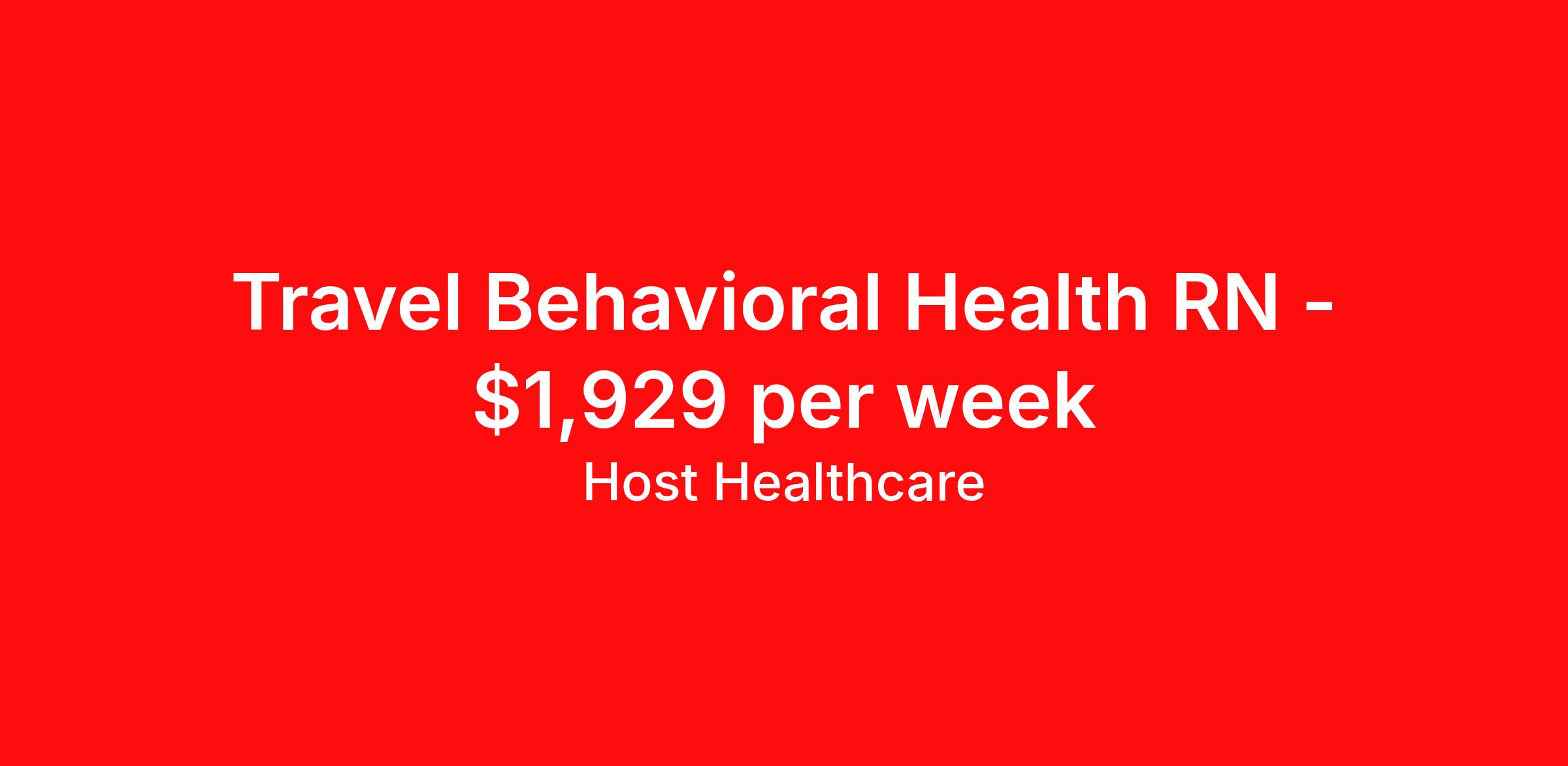 Host Healthcare is seeking a travel nurse RN Psychiatric for a travel nursing job in Avondale, Arizona. Job Description & Requirements Specialty: Psychiatric Discipline: RN Start Date: 04/13/2026 Duration: 13 weeks 36 hours per week Shift: 12 hours, nights Employment Type: Travel Host Healthcare Job ID a1fVX000002zkeHYAQ. Pay package is based on 12 hour shifts and 36 hours per week (subject to confirmation) with tax-free stipend amount to be determined. Posted job title: RN - Psychiatry About Host Healthcare At Host Healthcare, we provide a truly comfortable experience as you explore your travel nursing, therapy, or allied career. We make your travel healthcare journey easy by taking care of all the details, so you don’t have to. We are on a mission to help others live better and we do this by helping the healers of the world be as comfortable as possible. With access to tens of thousands of travel nursing, therapy, and allied jobs in all 50 states, our responsive and friendly recruiters find your dream position based on what’s important to you. During your assignment, get access to premium benefits, including Day 1 medical that continues up to 30 days between assignments, 401K matching, travel reimbursements, dedicated housing support, and more. We also offer 24/7 support from our team and access to our on-staff clinicians so you can feel comfortable and confident throughout your entire assignment. Travel comfortably with Host Healthcare. Benefits Referral bonus School loan reimbursement Vision benefits Wellness and fitness programs Company provided housing options License and certification reimbursement Life insurance Medical benefits Mileage reimbursement Pet insurance Discount program Employee assistance programs Guaranteed Hours Health savings account Holiday Pay 401k retirement plan Continuing Education Dental benefits