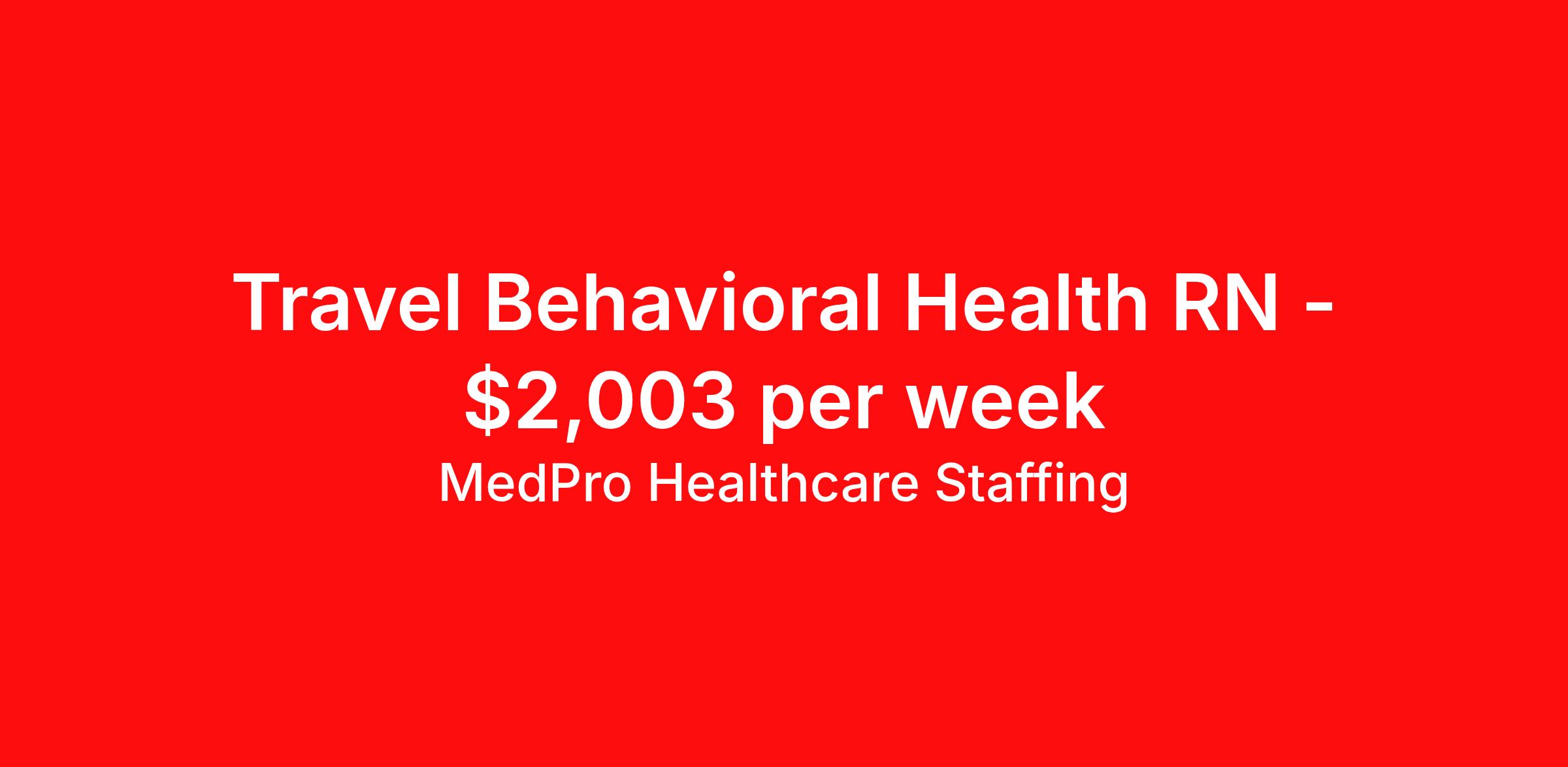 Travel Behavioral Health RN - $2,003 per week