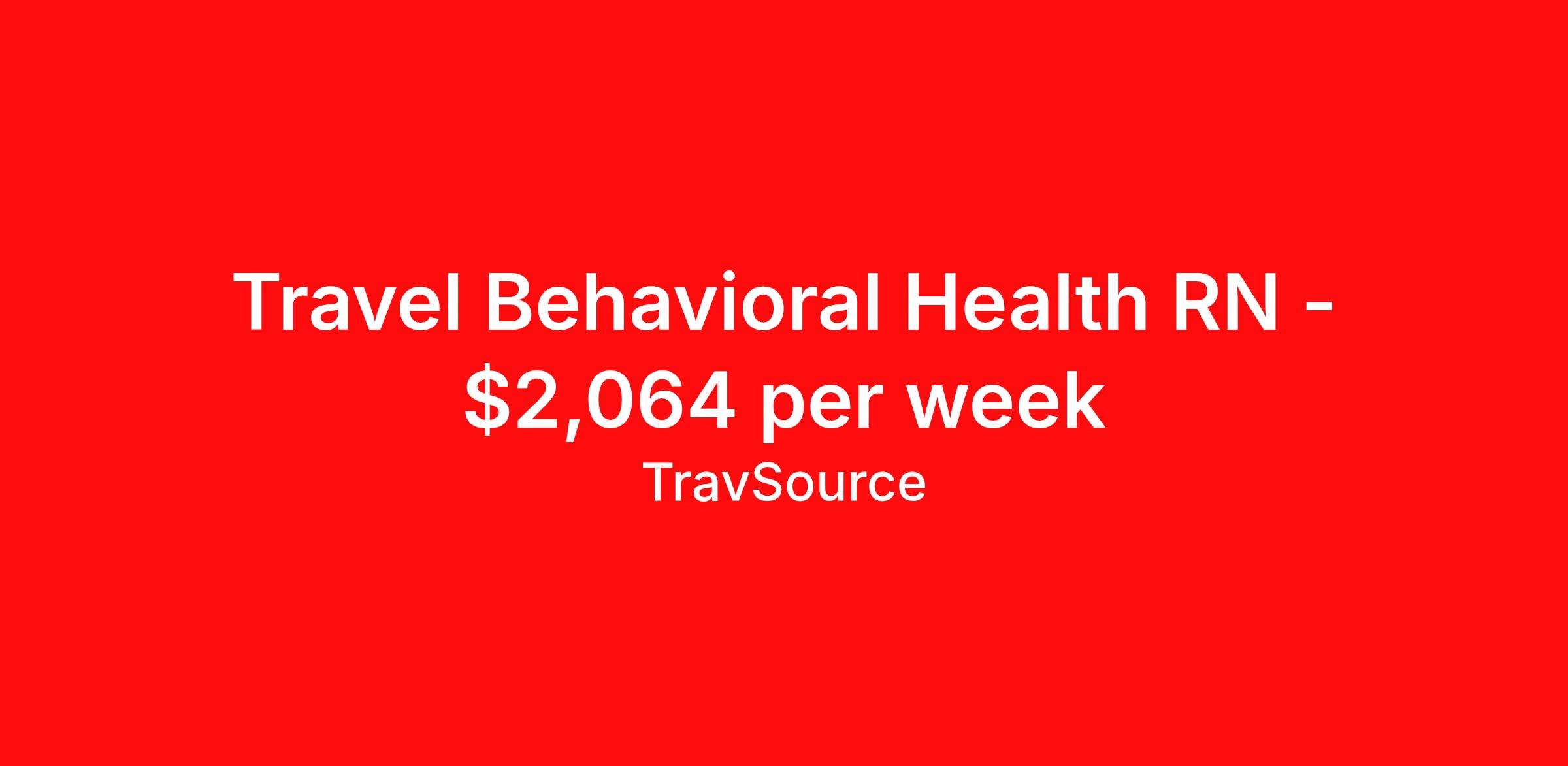 Travel Behavioral Health RN - $2,064 per week